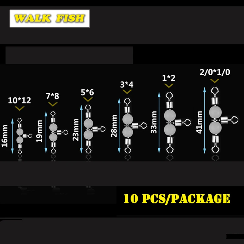 Walk Fish, 10 шт., 1 #2 #4 #6 #8 #10 #, светящаяся перекрестная леска Соединительный Вертлюг для рыбалки, 3-ходовой соединитель для лески, вращающийся Вертлюг