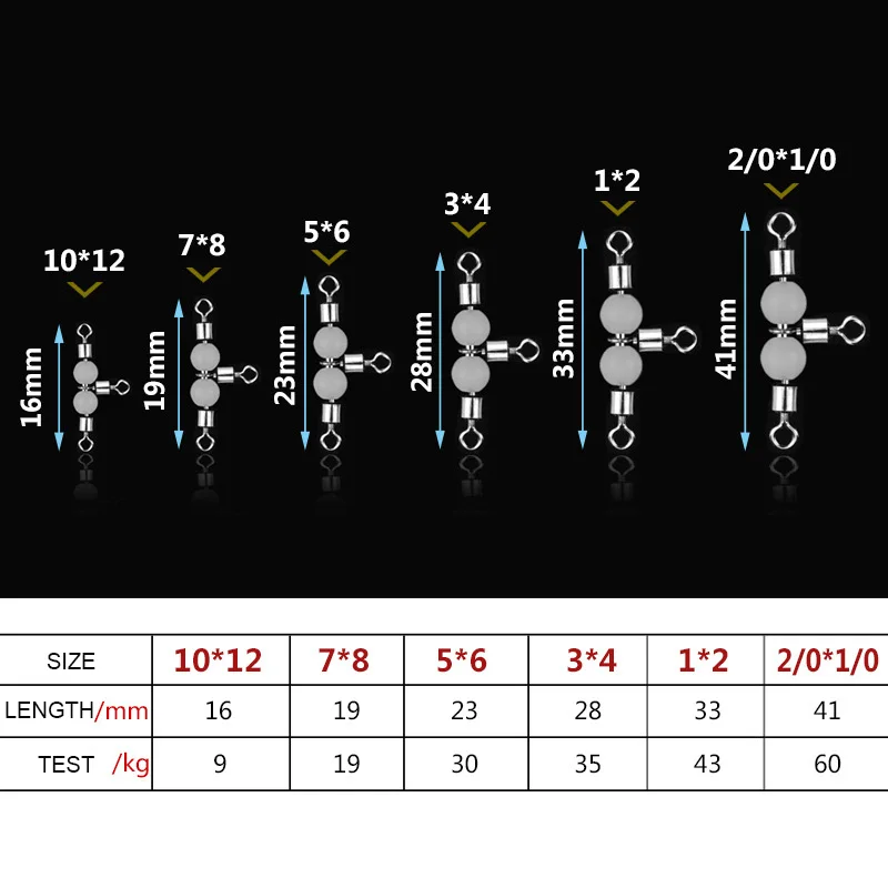 WALK FISH 10 шт.лот 3-сторонние светящиеся Вертлюги разъем шариковы...