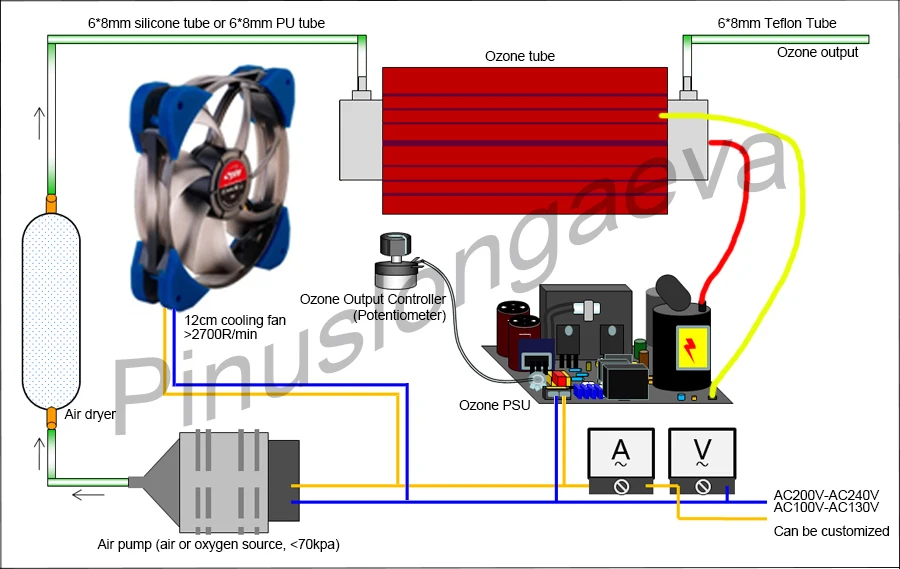 Озоновый Блок питания: вам необходимо установить его на изоляционной плате, вдали от озоновой трубки и металлического корпуса более 4 см.