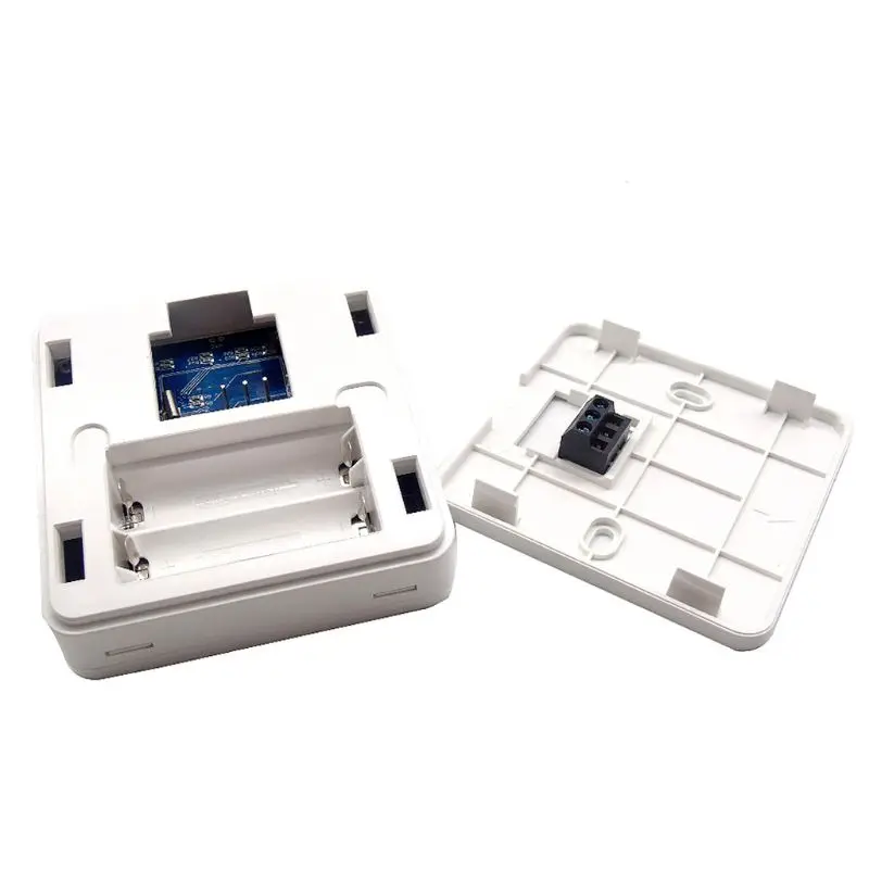 Особенности: Белая подсветка. Простое управление даже ночью Вносит вклад в защиту окружающей среды за счет экономии энергии Вы можете запрограммировать термостат и дать ему работать автоматически Характеристики: Точность дисплея: 0,5 ℃ или 1 °F Датчик зонда: NTC(10k)1% Емкость контакта: 5 А/250 В Температура рабочей среды: 0 ~ 70 °C/32 ~ 158 °F Диапазон регулировки температуры: 5 ~ 35 °C/41 ~ 95 °F Диапазон отображения температуры: 0 ~ 40 °C/32 ~ 99 °F Выход: Реле Переключения Состояние изоляции: нормальная среда Программа бега: устанавливается на 1 неделю в качестве цикла Установка: Настенный или на сиденье аккумулятора Питание: 230 В переменного тока (настенный) Питание: две щелочные батарейки AA * 1,5 V (не входят в комплект). (гнездо батарейки) Материал корпуса PC + ABS (огнестойкий) Размер (мм):86*86*27 мм/3,39*3,39*1,10 дюйма Посылка входит: 1 программируемый термостат 1 x Руководство пользователя 2 винта