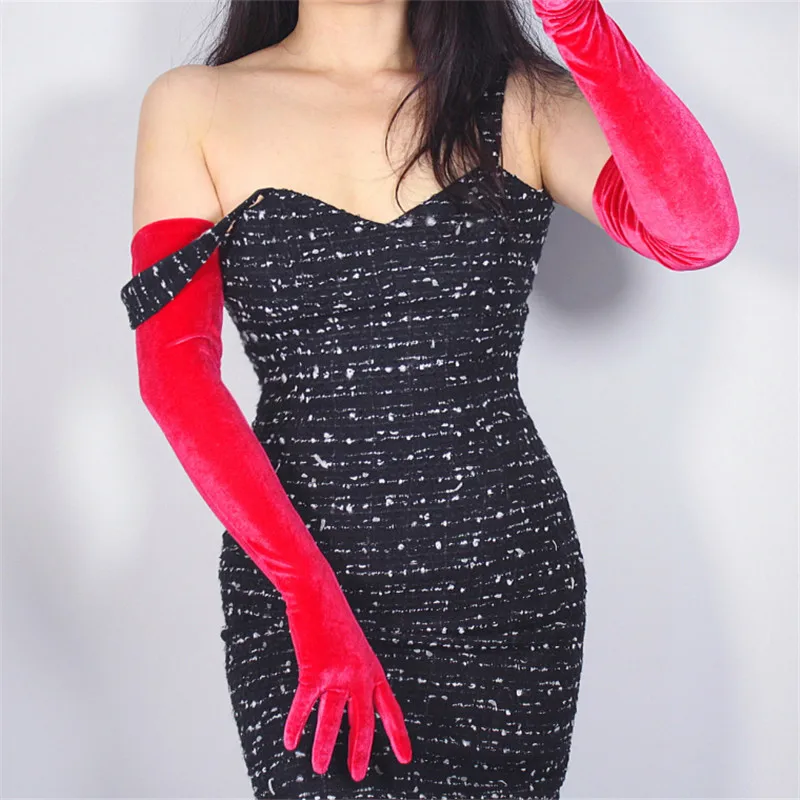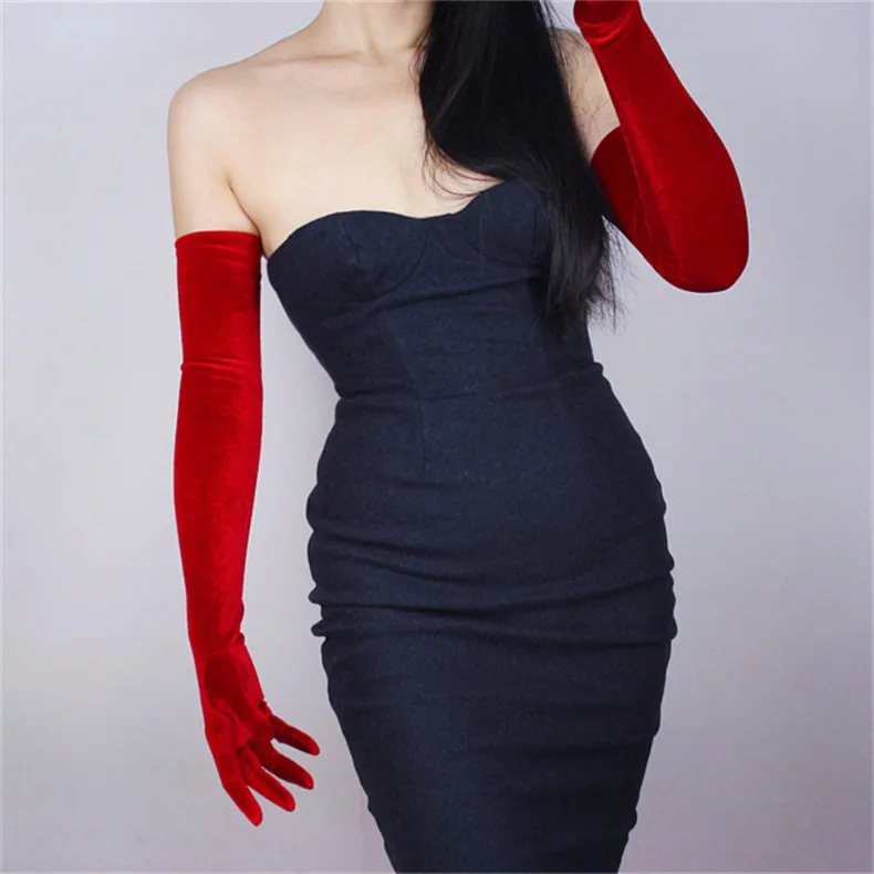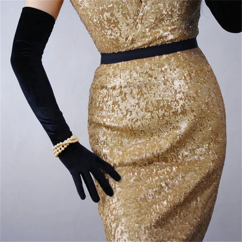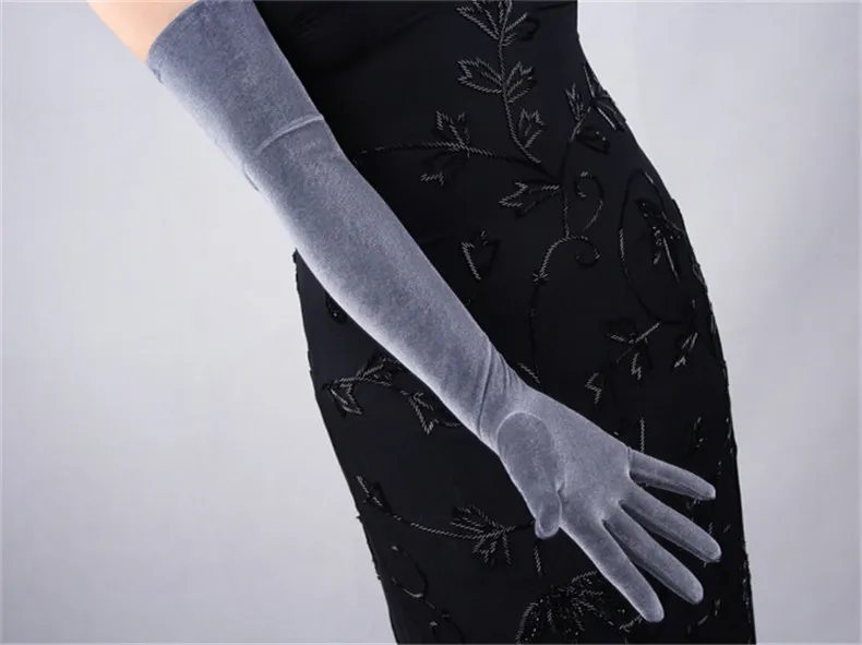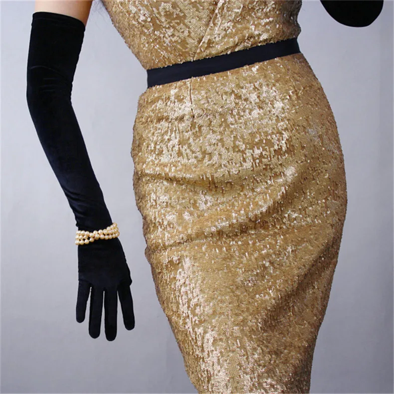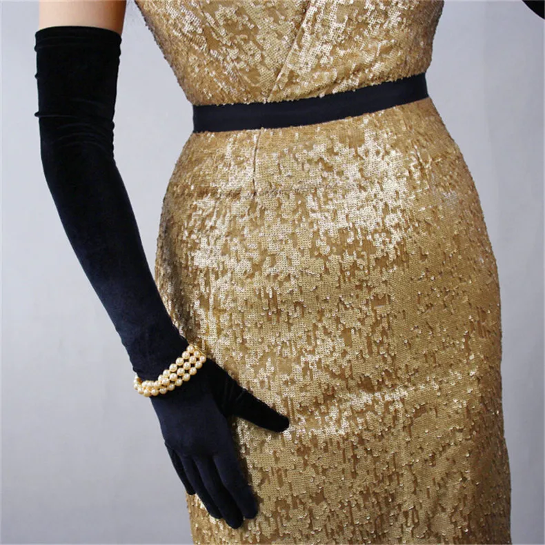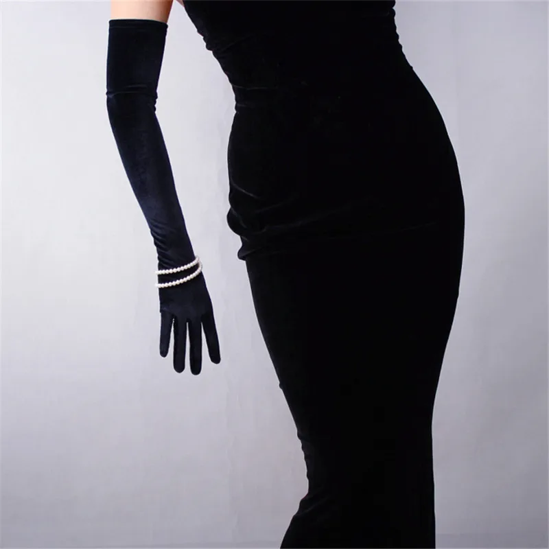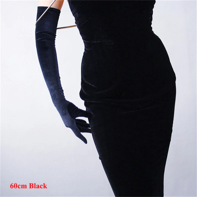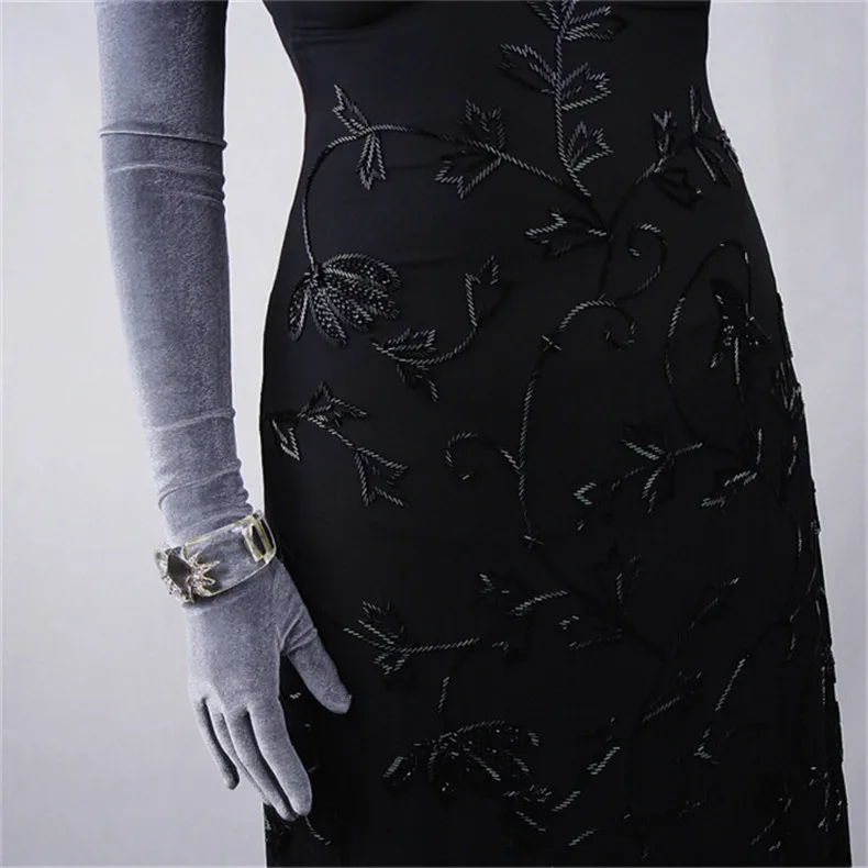 Перчатки женские черные велюровые, сверхдлинные, 60 см, эластичные, с черным лебедем, для сенсорного экрана, WSR08