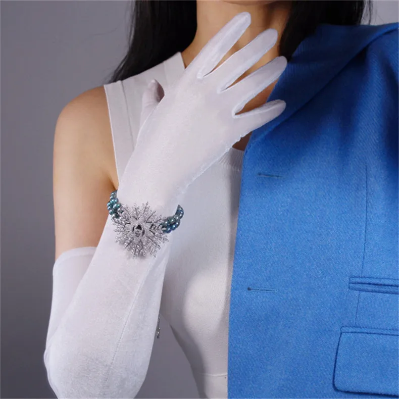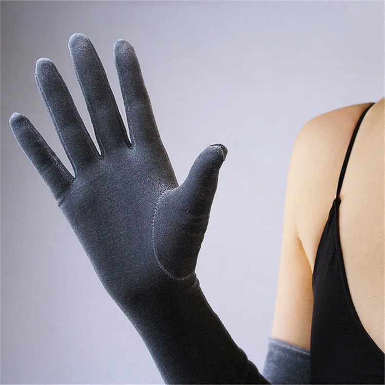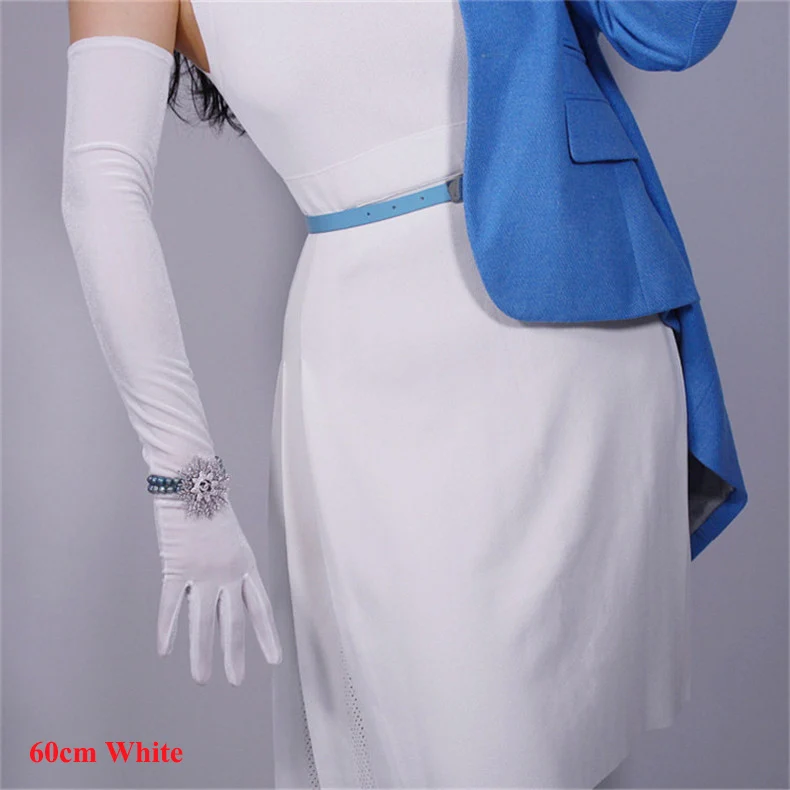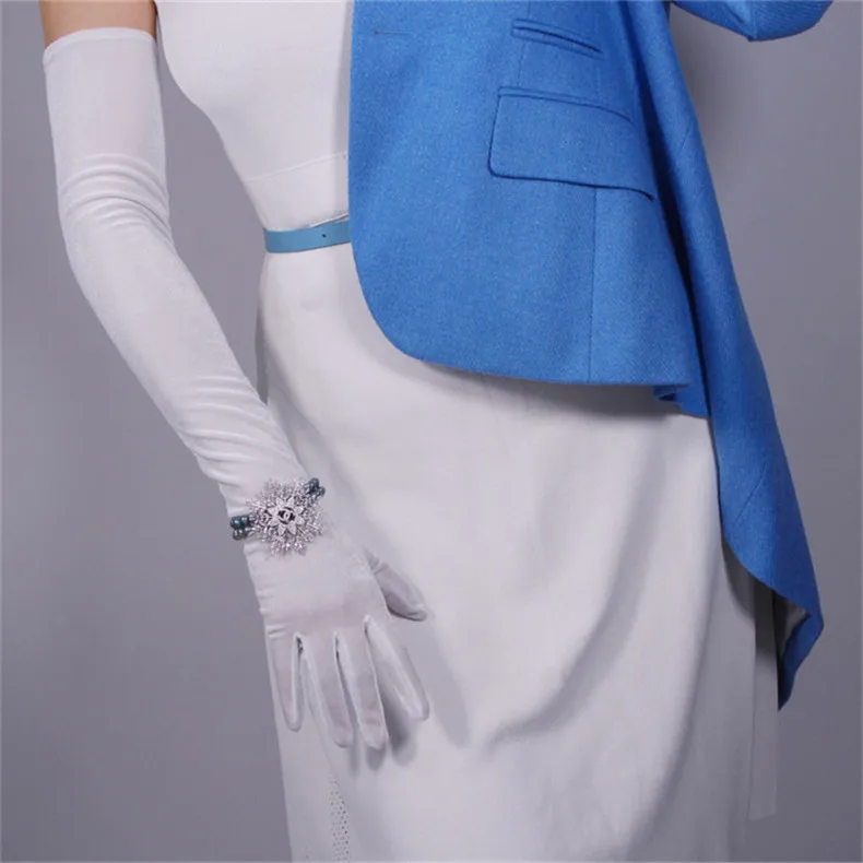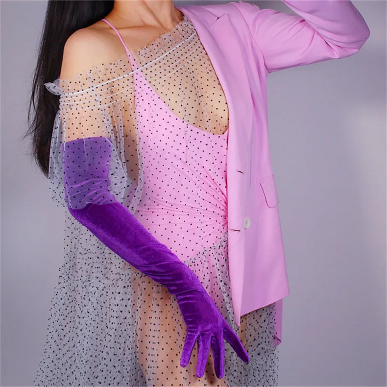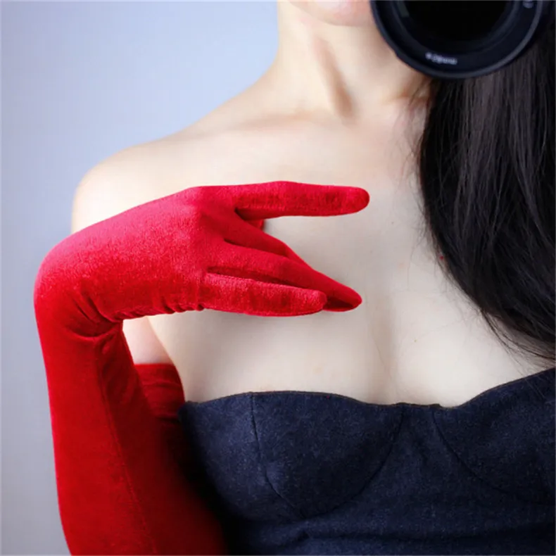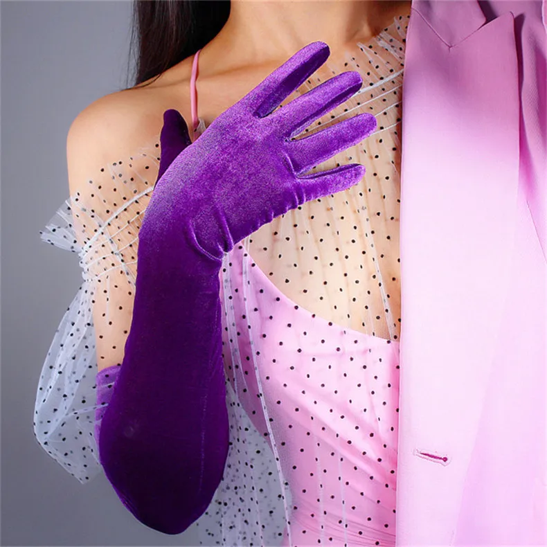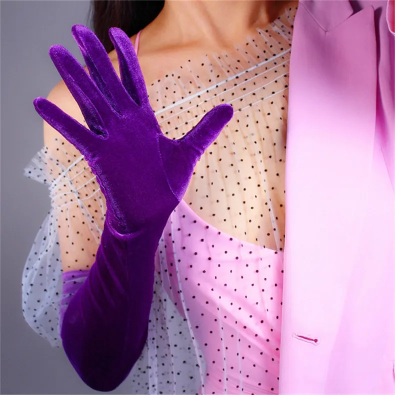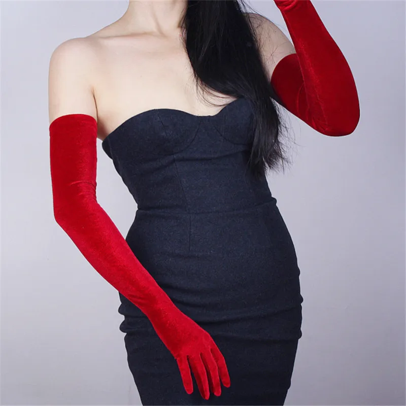 Перчатки женские черные велюровые, сверхдлинные, 60 см, эластичные, с черным лебедем, для сенсорного экрана, WSR08