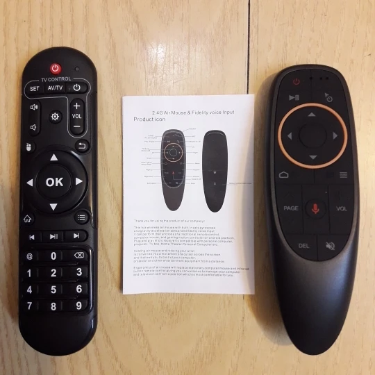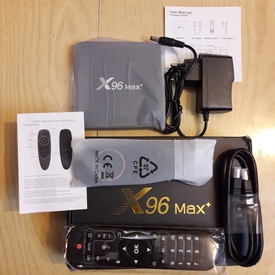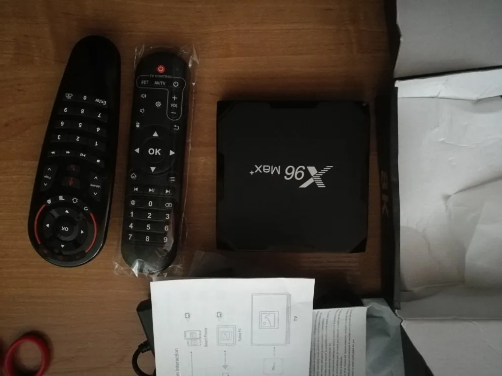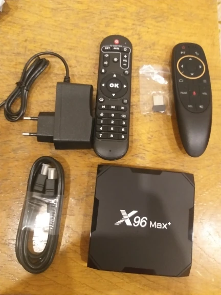 Получил приставку к телику в представленной ниже комплектации. В Нур-Султан посылка шла 40 дней. Коробка в пупырчатом пакете дошла без изъянов. Подключил к телику через HDMI, вставил в оба пульта по 2 мизинчиковых AAA аккумулятора. Настроил. Всё отлично работает. Жаль нету описания. Коротенькая инструкция к аэромыши на английском. Разобрался. Интуитивно всё понятно. Аэромышь очень понравилась, удобная вещь, тем более что можно управлять также голосом. Покупкой очень доволен. Продавцу респект.
