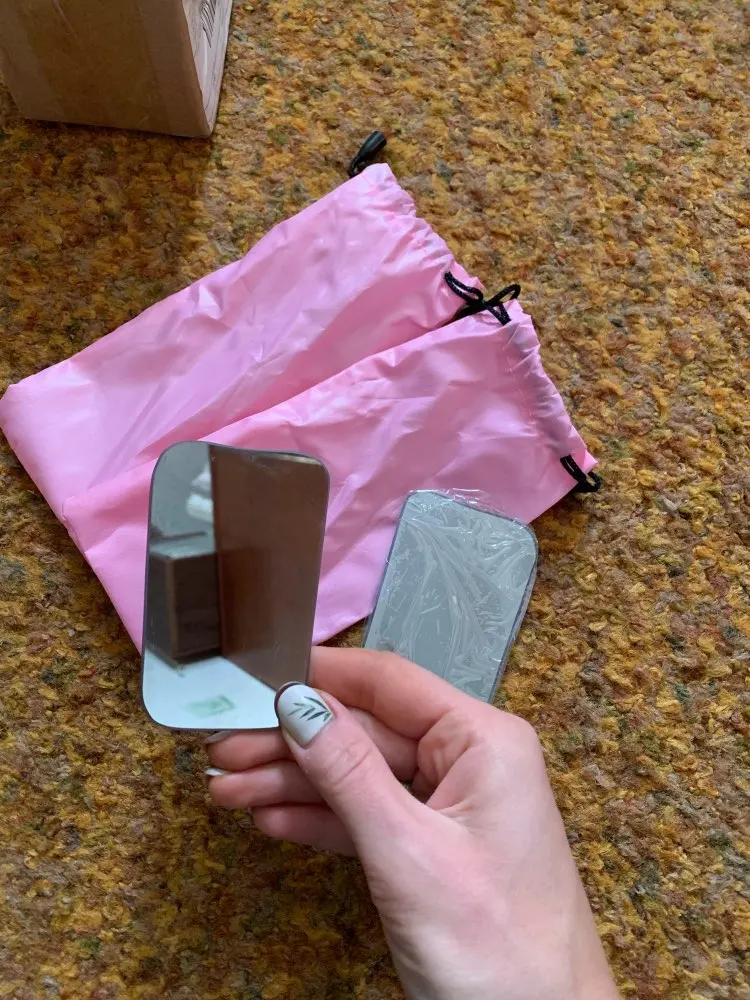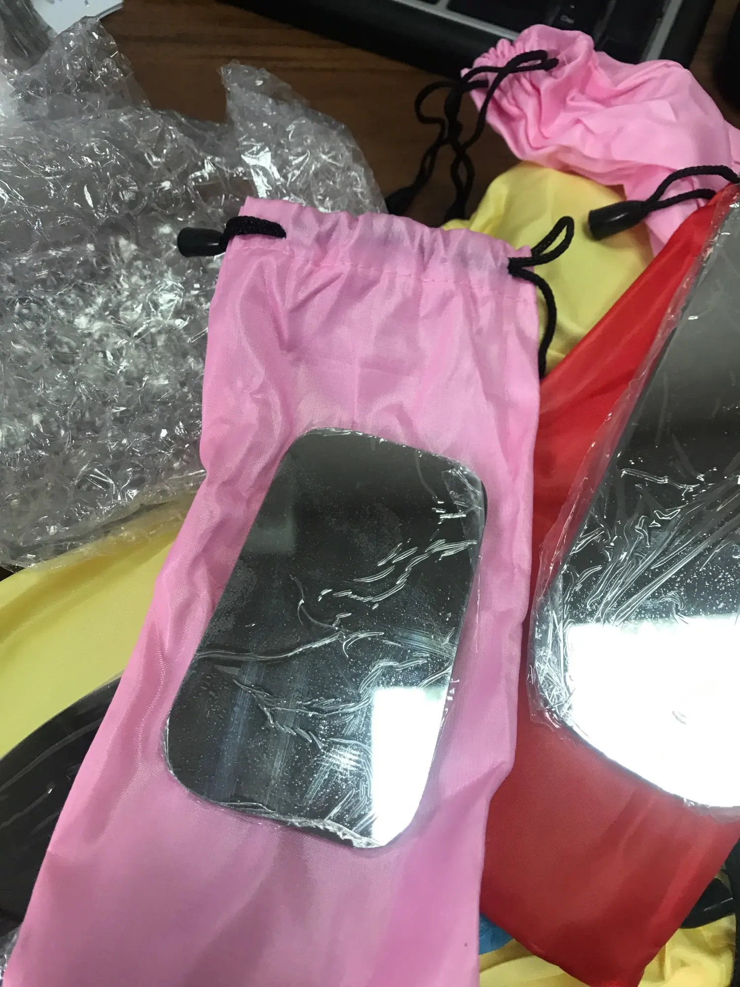 Пришло зеркало в жёлтом мешочке,с двух сторон плёнка,норм вроде