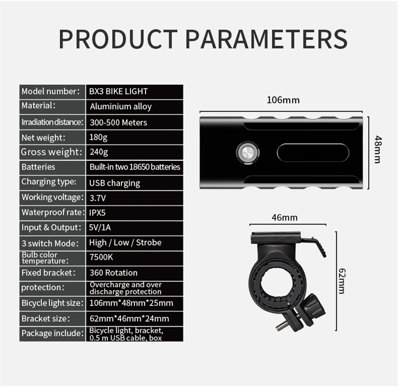 БициклАвтомобильный светильник, вспышка, светильник, зарядка, три в одном, многофункциональный, горный велосипед, светильник