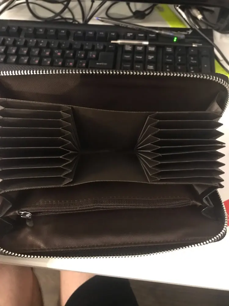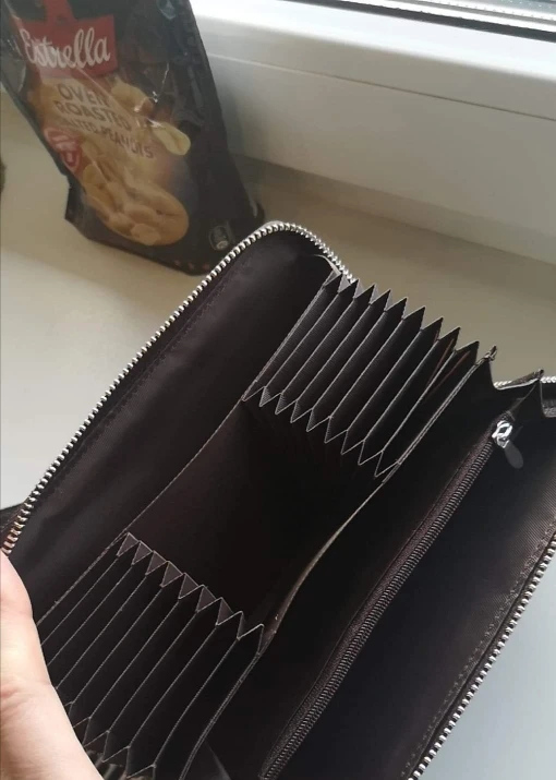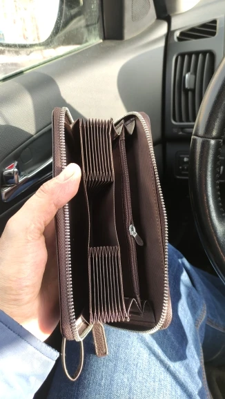 Отличный кошелёк, удобный и функциональный, многое помещается. Заказали с мужем ему второй раз.