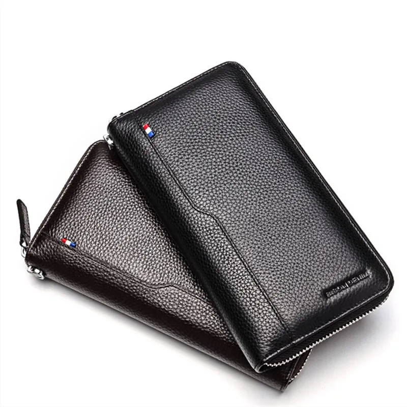 Мужской клатч BISON DENIM, из 100% коровьей кожи, с RFID-защитой, держатель для карт, кошелек, портмоне, Длинный кошелек для телефона, W8226