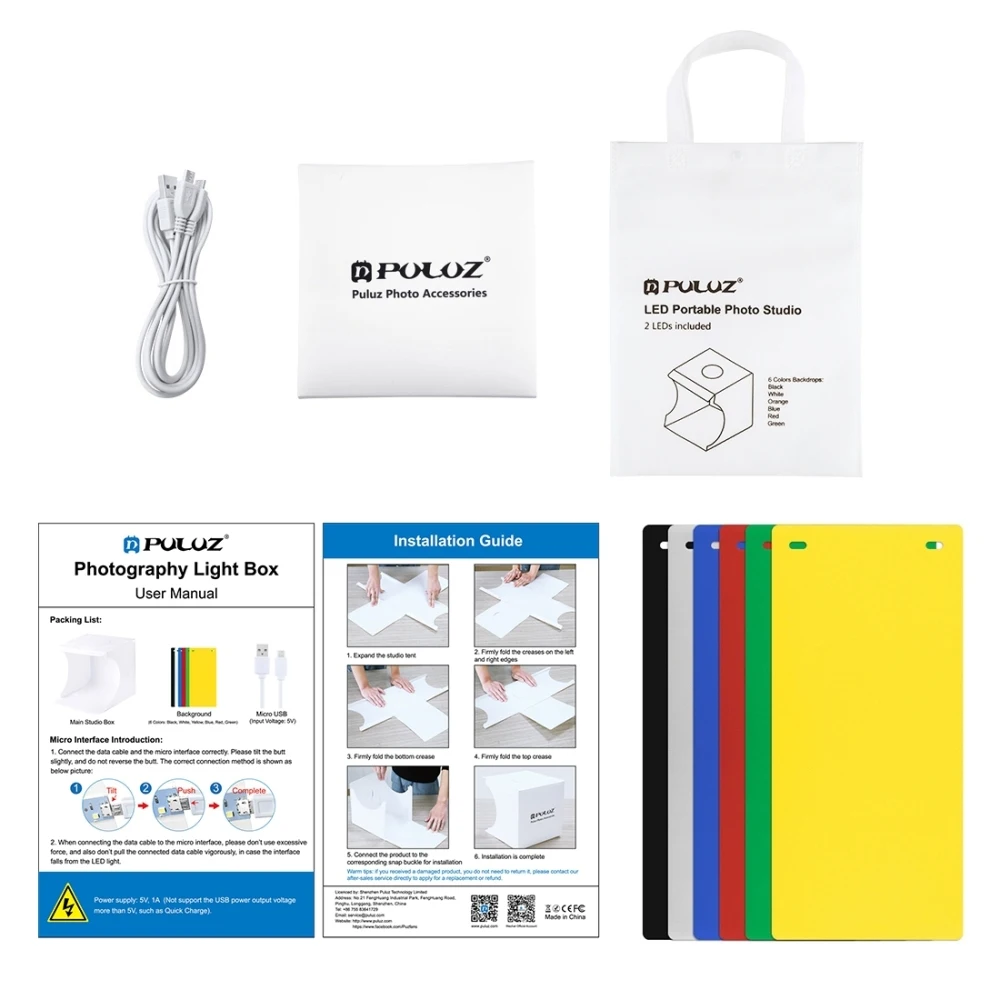 Складной светильник вой короб PULUZ, 20 см, 25 см, 30 см, световой мини-короб для фотостудии, световой короб для студийной фотосъемки, комплект из 6 фонов