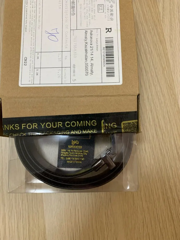 Доставка быстрая. Упакован в коробочку. На вид отличный ремень. Пока не надевали ещё