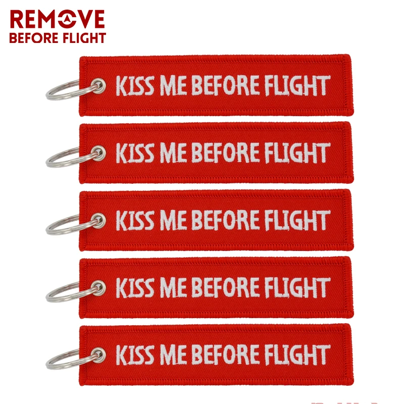 5 шт./лот Kiss Me Before Flight брелок с вышивкой Anahtarlik Этикетка Красный брелок для авиационных подарков автомобильные брелки