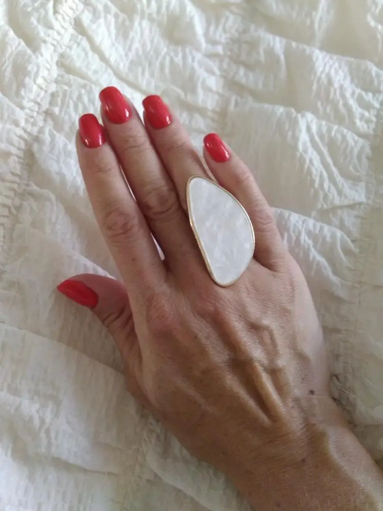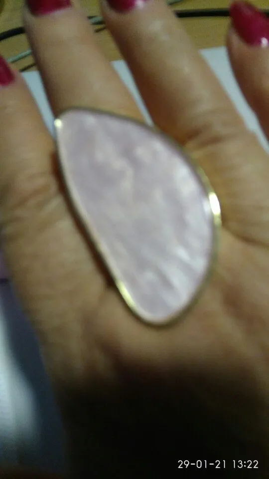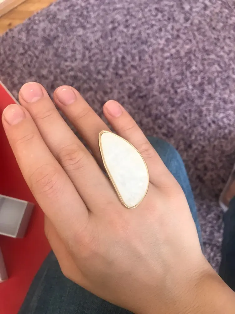 Потрясающее кольцо, спереди выглядит роскошно и довольно велико. Задняя Регулируемая лента немного дешевая и Незаметная, поэтому я буду осторожны, когда надену ее, чтобы не стучать и отрывать ремешок. Абсолютно потрясающе на моей руке.
