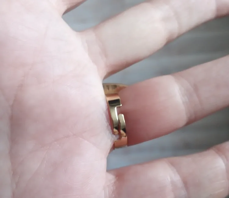 Отличное кольцо, размер регулируется. Смотрится стильно. Пришло быстро