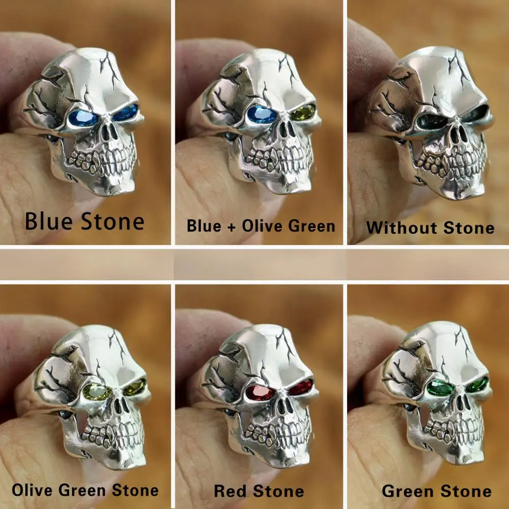 LINSION 925 пробы серебро CZ Глаза Череп Кольцо мужское байкер рок панк кольцо TA131 Размер США 7 15