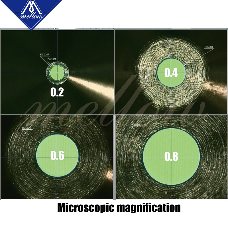 Состояние поверхности отверстия под микроскопом является чистым без заусенцев, и на данный момент в печати это дает мне полное удовлетворение. .. Со своими предыдущими насадками плохих качеств, у меня было триггер, это никель для моего CR10S ;)