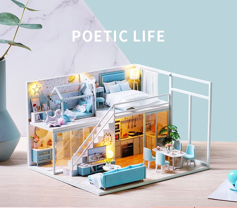 CUTEBEE DIY кукольный домик, деревянные кукольные домики, миниатюрный кукольный домик, комплект мебели с музыкой, светодиодные игрушки для детей, подарок на день рождения L026