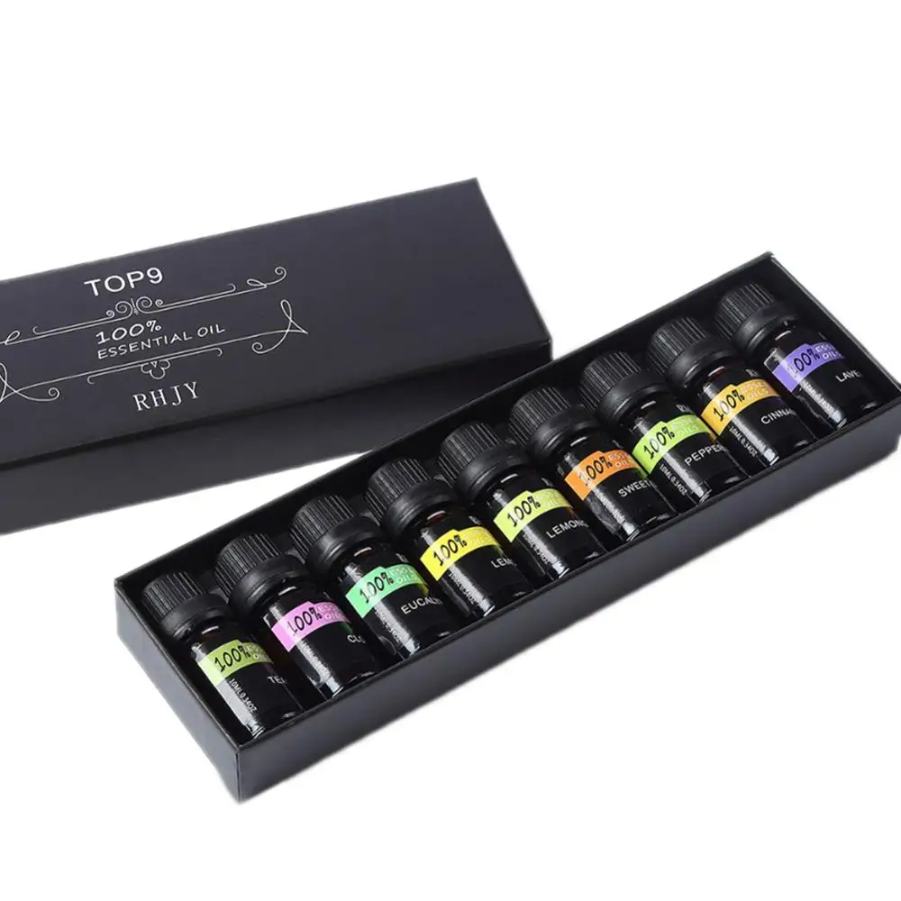 Набор натуральных эфирных масел для ароматерапии 9 шт.компл., увлажнитель 10 мл, водорастворимое ароматическое масло, набор эфирных масел для свежего воздуха