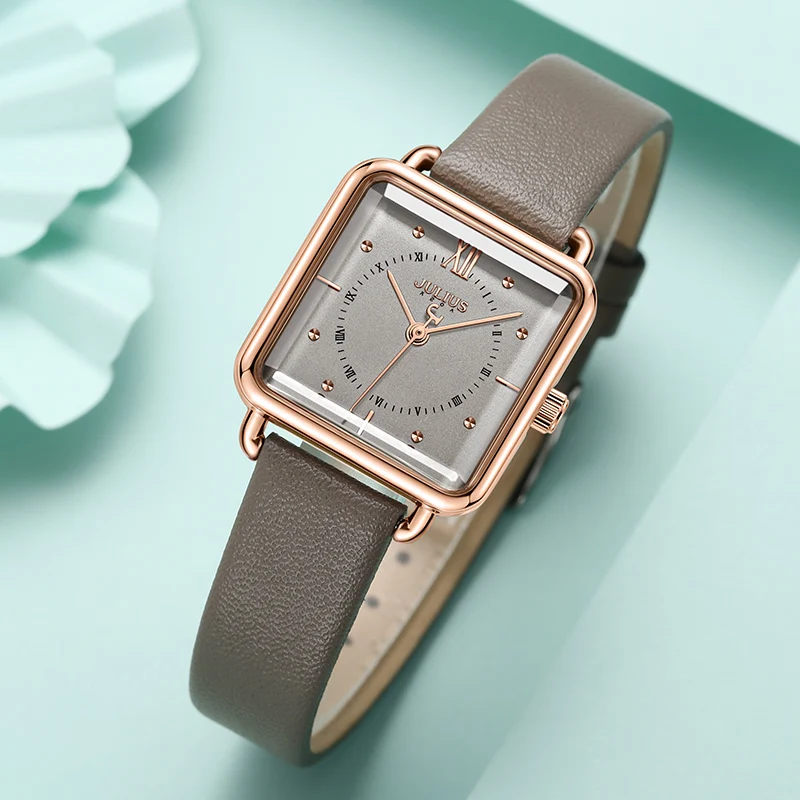 Часы наручные Julius женские с кожаным ремешком, элегантные японские кварцевые маленькие квадратные модные, Подарочная коробка для девушек на день рождения