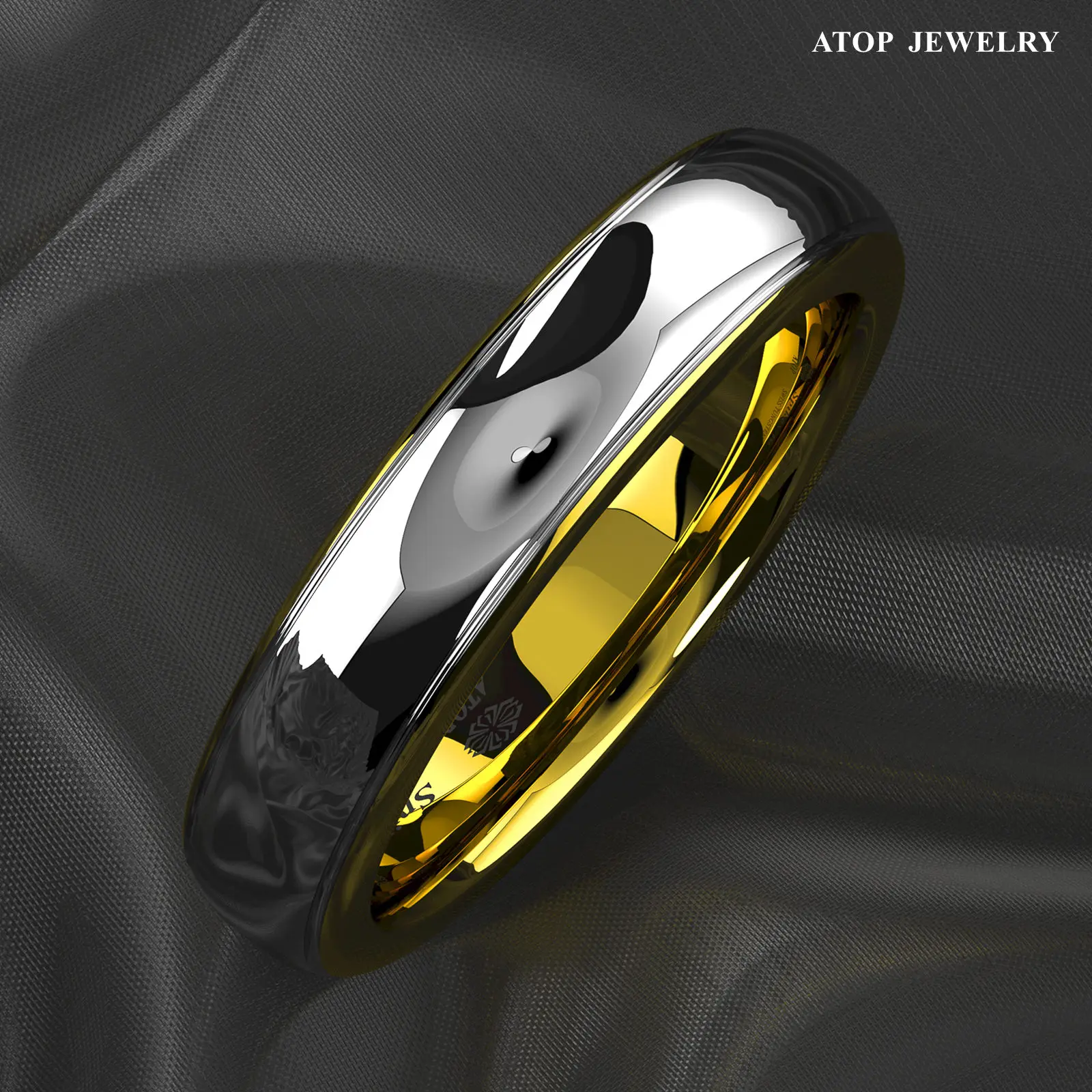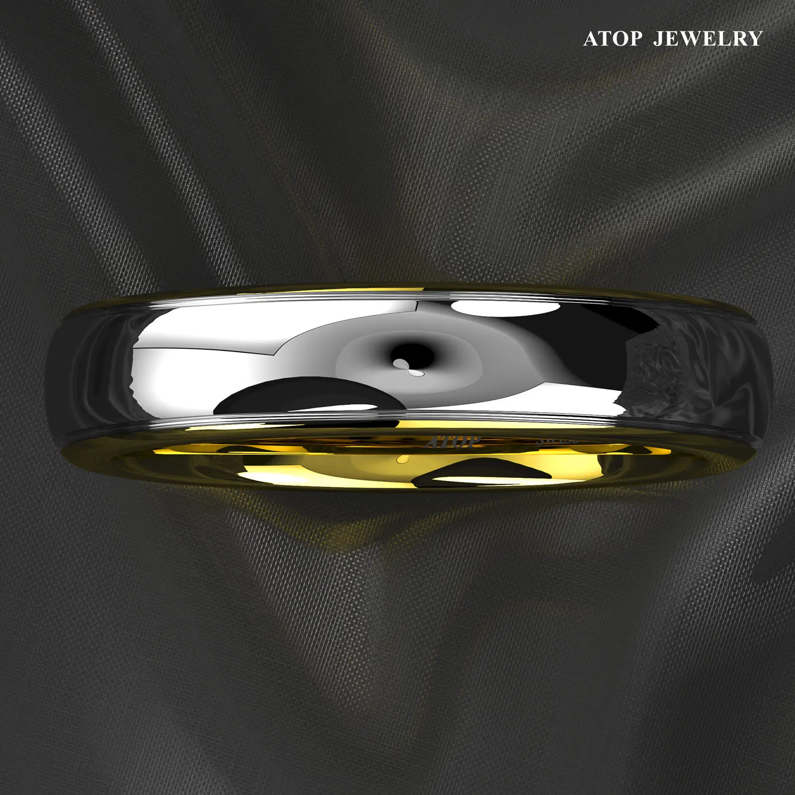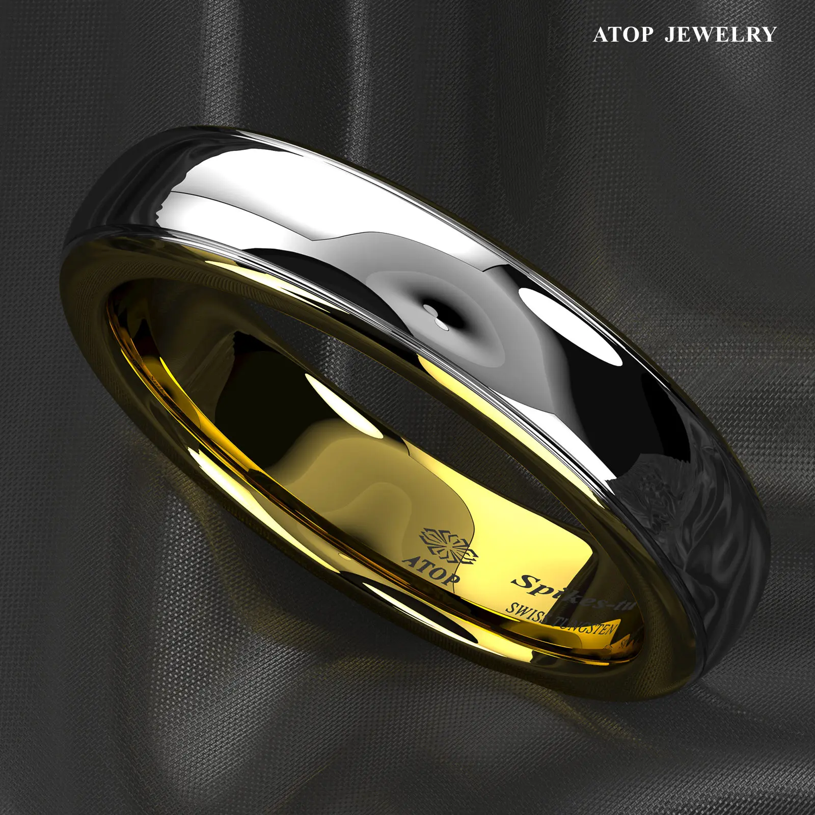 Мужское вольфрамовое кольцо с куполом 6 мм, 18 К, золото, серебро