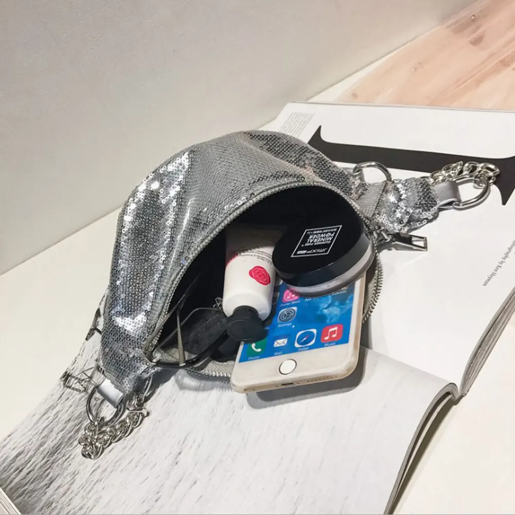 Женская поясная сумка с блестками, сумка на одно плечо из искусственной кожи, сумка поясная на молнии, 2019
