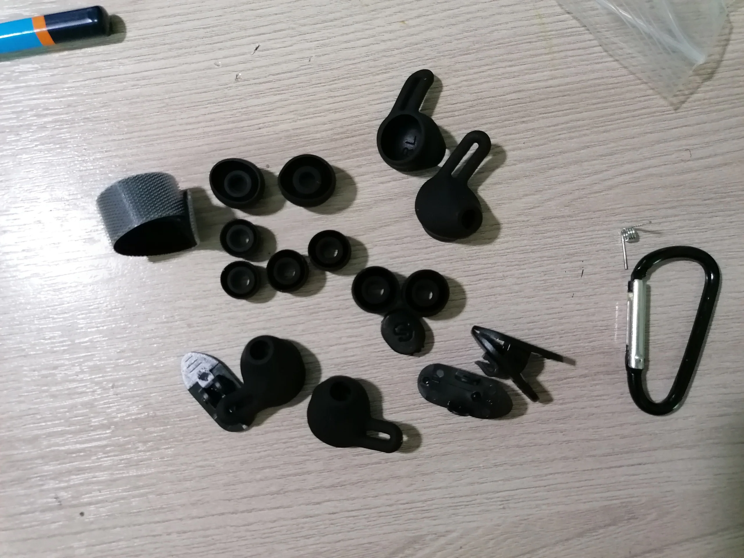 Получил наушники некоторое время назад, попользовался, теперь могу оставить отзыв. Наушники хорошие, довольно громкие, пришлось пересмотреть любимые значения громкости на телефоне. Пару дней пришлось потратить, чтобы подобрать амбушюры и фиксаторы, которые мне удобны и дают лучшее звучание: чтобы и басы были, и уши не натирались, и наушники уверенно держались. Амбушюров пять пар в комплекте, фиксаторов вроде три пары. Ещё есть всякие клипсы и подобное для пристёгивания наушников к воротнику или ещё куда-нибудь. Не пользуюсь. По сравнению с предыдущими наушниками чуть более заторможенные кнопки: дольше включаются/выключаются, меняют трек, ставят на паузу и т.д. Но реальная задержка небольшая, и быстро привыкаешь, просто на фоне с другой моделью заметно. Микрофон тоже отличный, собеседники говорят, что слышно меня прекрасно, даже когда иду вдоль дороги или в другом шумном месте