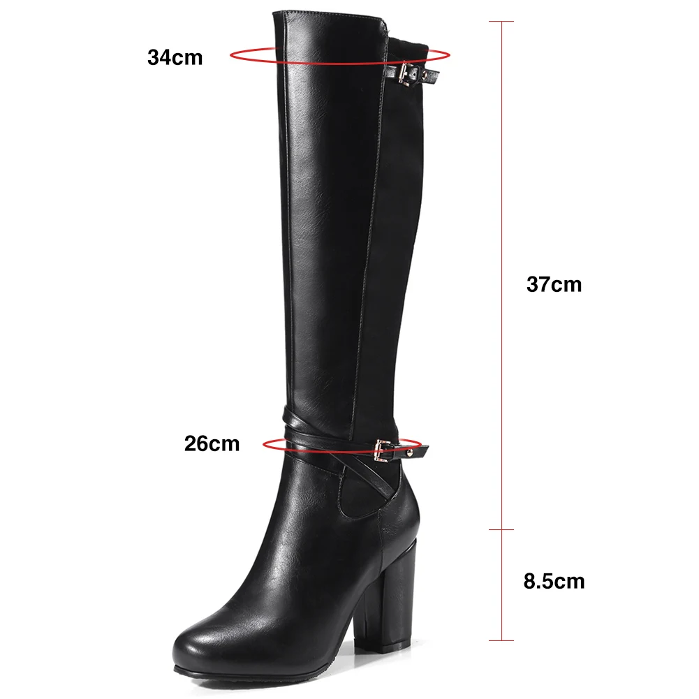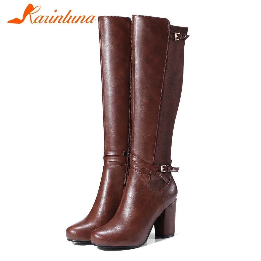 KarinlunaНовое поступление, сапоги до колена на массивном высоком каблуке, большие размеры 33-43 Женская обувь Прямая поставка, обувь черного и коричневого цвета женские ботинки