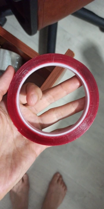 Лента такая же, как на фото и очень липкая. Кажется, хорошо держится. Используется для приклеивания некоторых частей светодиодной ленты на кухонные шкафы и, кажется, хорошо держится независимо от того, что это жарко и довольно отпариво, когда вы готовите. Меня раздражает только то, что если вы используете небольшой кусок, красная подложка-это боль, и вам нужно что-то острое, чтобы помочь вам удалить подложку. Не знаю, является ли это нормой с этим типом двусторонней ленты. Но эта лента, безусловно, намного лучше, чем тонкая Двусторонняя лента.