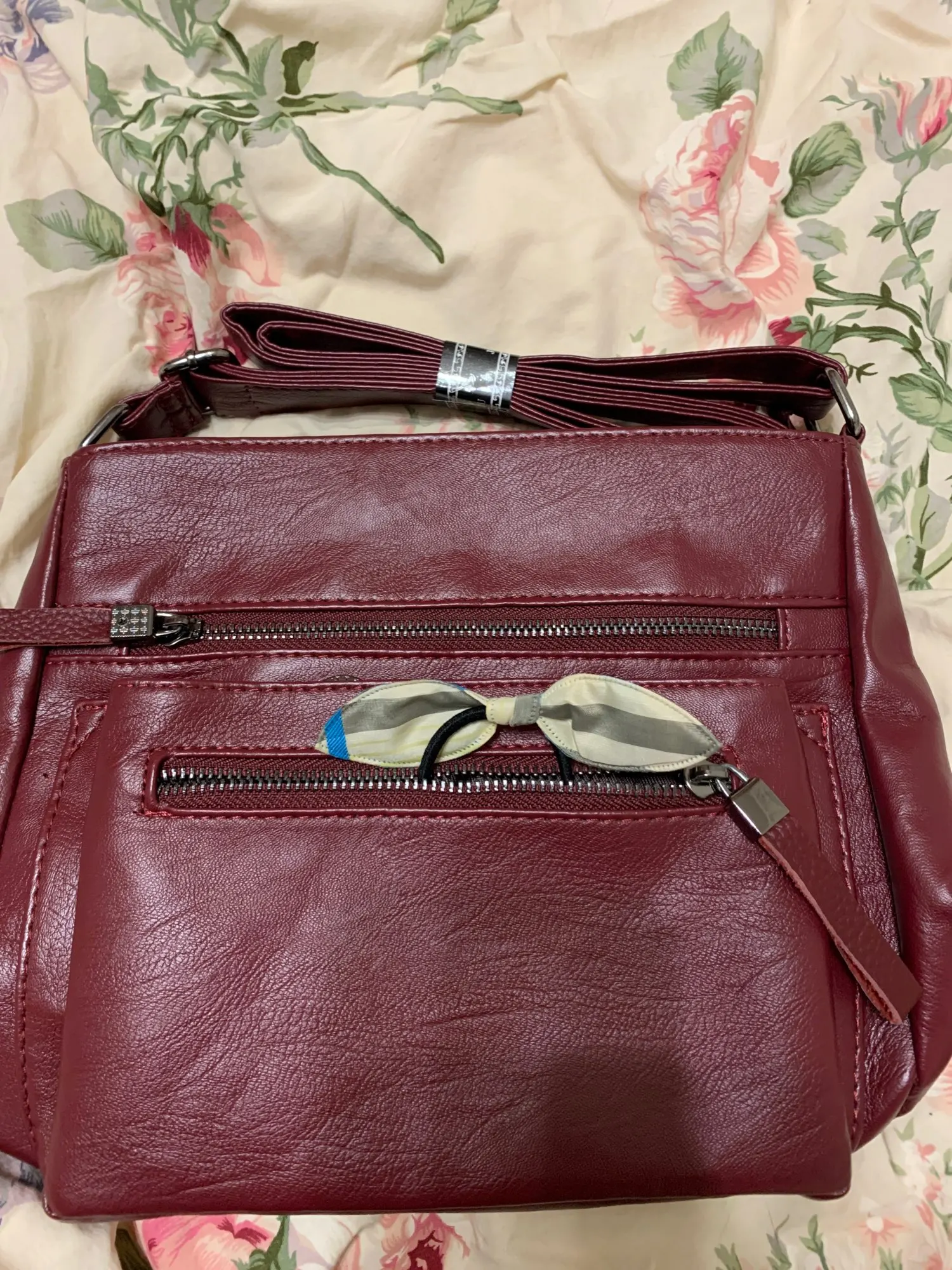 Сумка замечательная, замки все работают, положили в подарок резиночку для волос, спасибо.