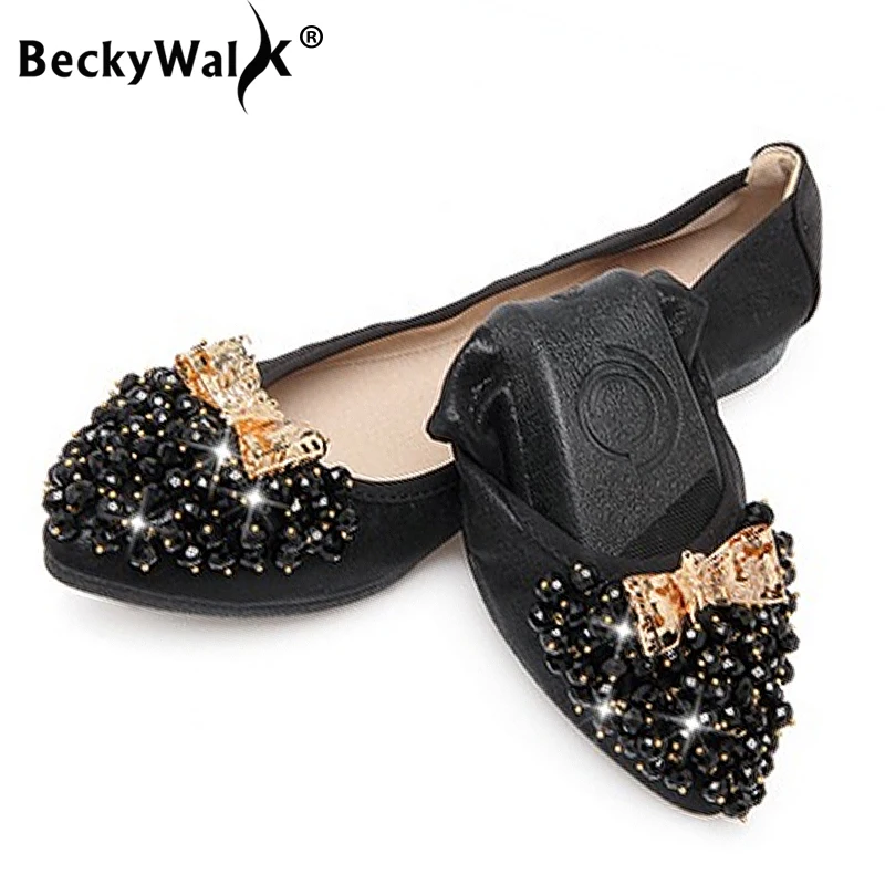 Женские балетки на плоской подошве, складные, с бусинами, размеры 34-43, для весны и лета, WSH2533, 2021