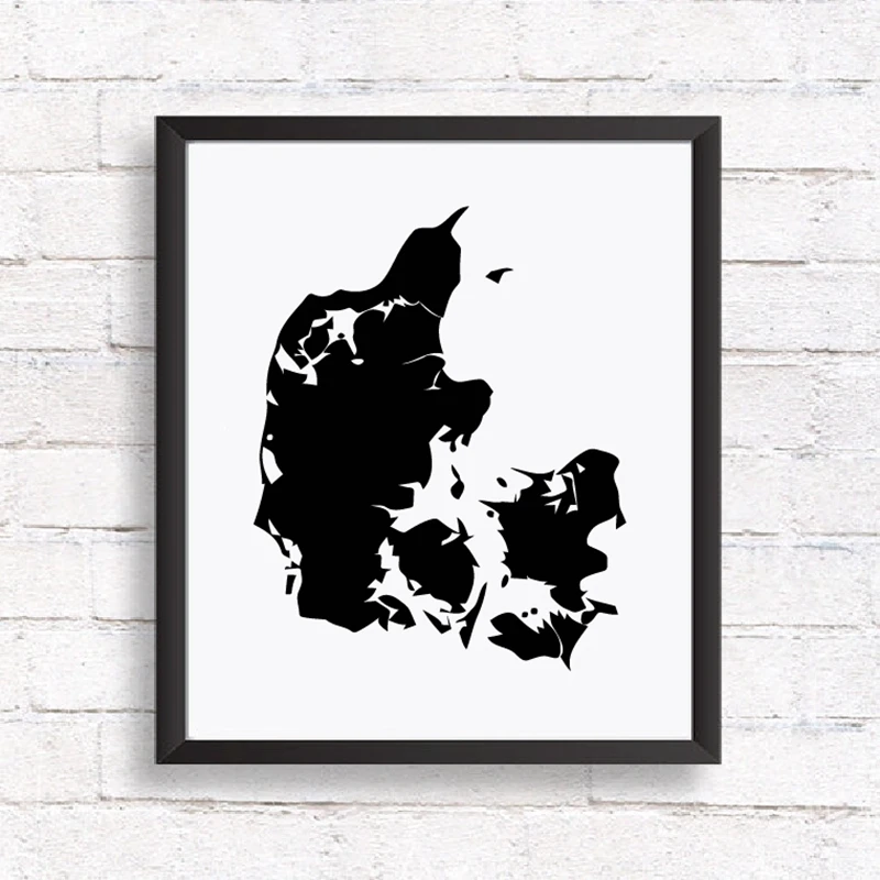 Черно-белая карта страны, плакаты, принты, карта исландии, дании, норвегии, швеции, финляндии, холст, живопись, настенное искусство, декор