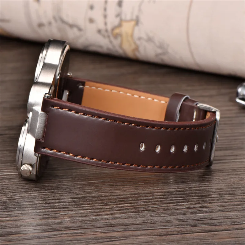 Multiple Time Zones Casual WatcheLeather strap Quartz-Watch