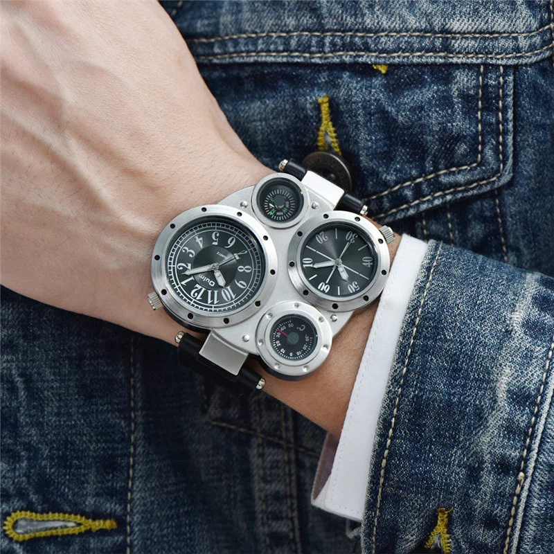 Мужские кварцевые часы Oulm, с двумя часовыми поясами, с компасом, ...
