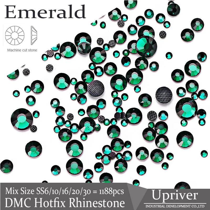 Восстание исправление стеклянные стразы изумруд SS6-SS30 смешанные размеры DMC из стразов для одежды аксессуары
