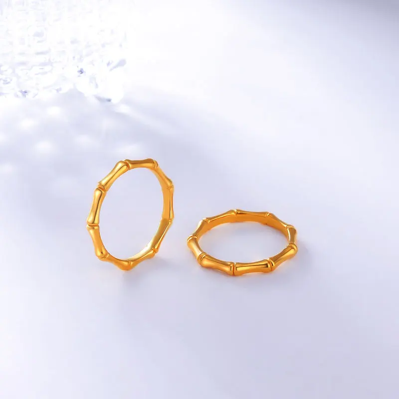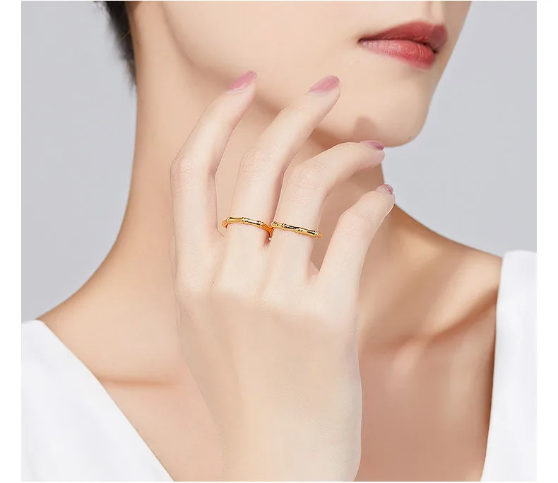 Женское кольцо бамбуковой формы, твердое кольцо из 24-каратного желтого золота, размер 5-9, лучший подарок для безопасности