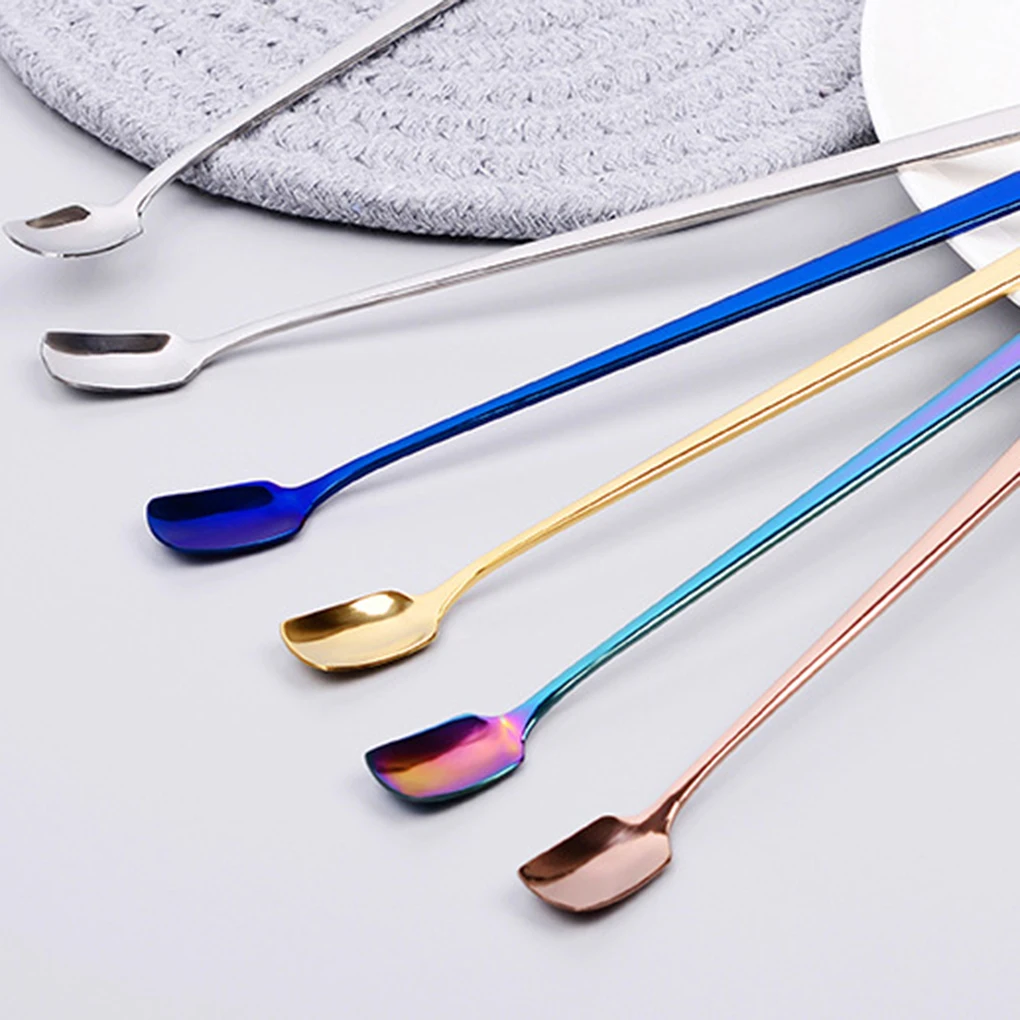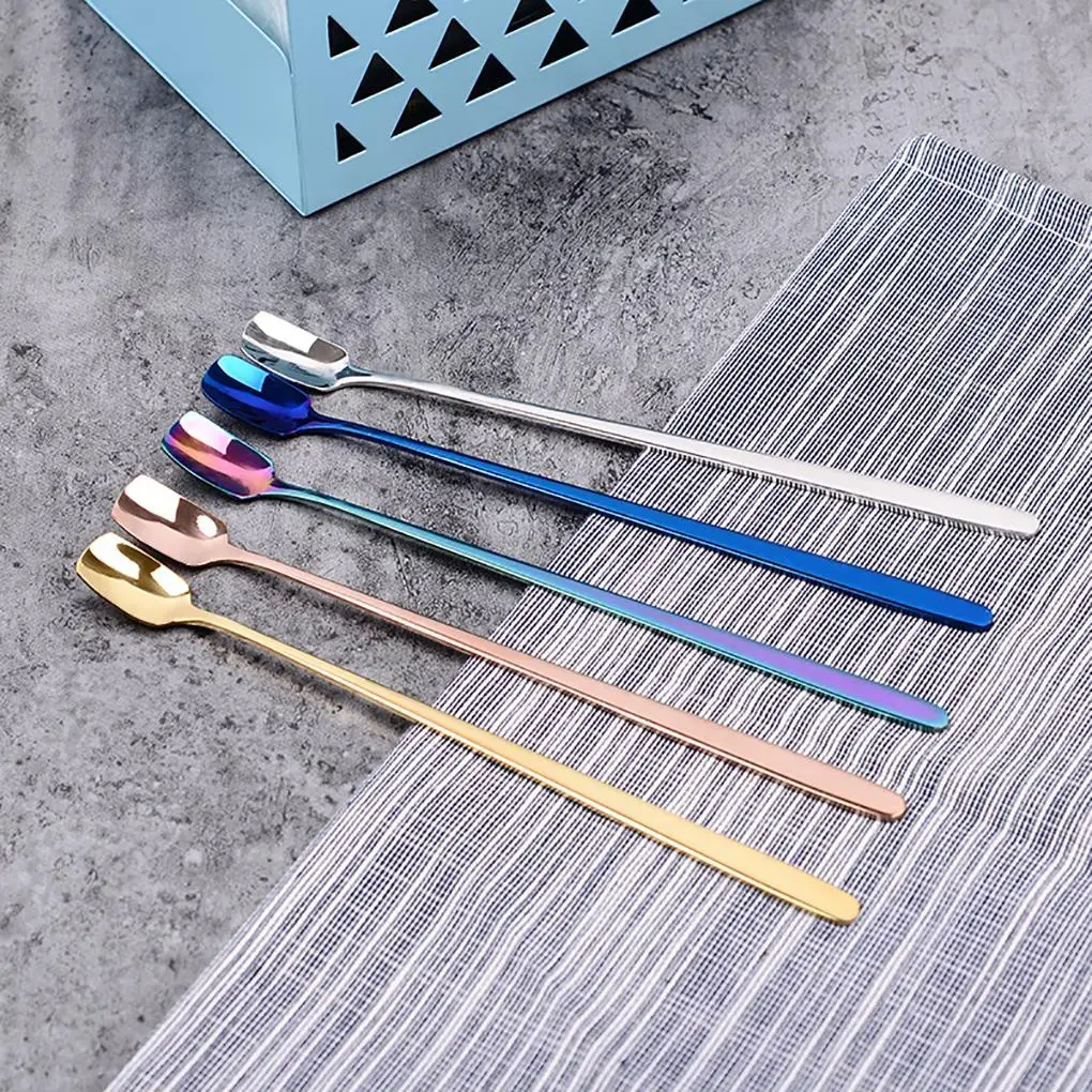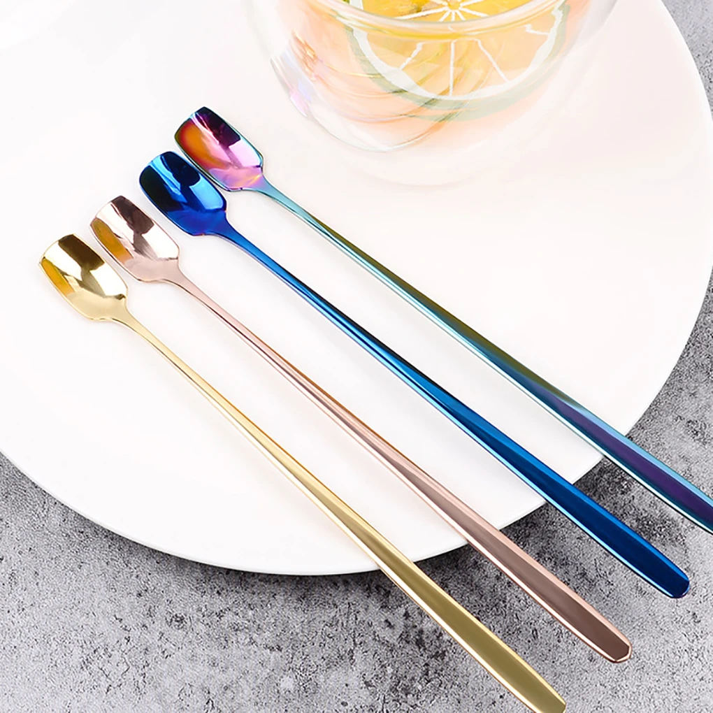 Кофейные ложки с длинной ручкой из нержавеющей стали, ложки для смешивания холодных напитков, фруктов, мороженого, десертов, чайных ложек, инструменты для питья
