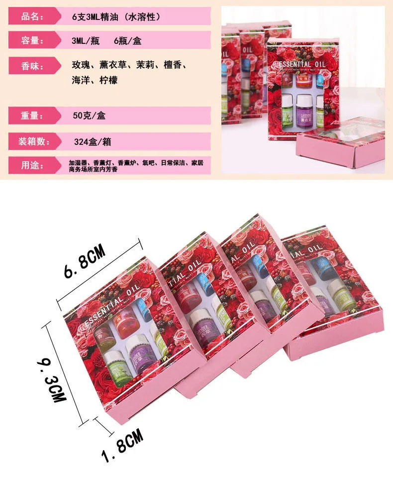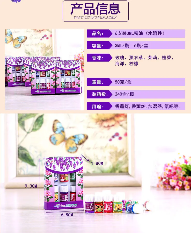 6 бутылок по 3 мл увлажнитель эфирного масла для ароматерапии комнатный водорастворимый аромат ароматная декомпрессия