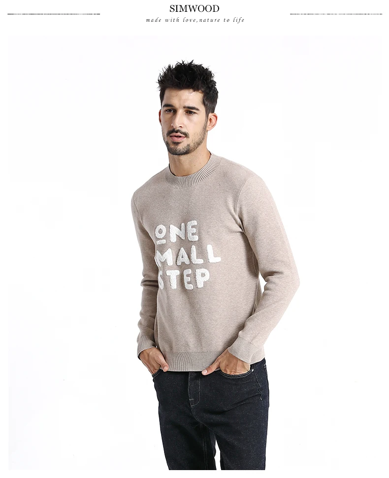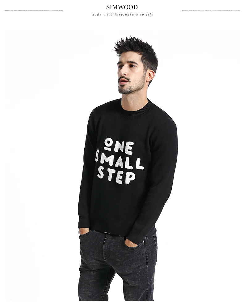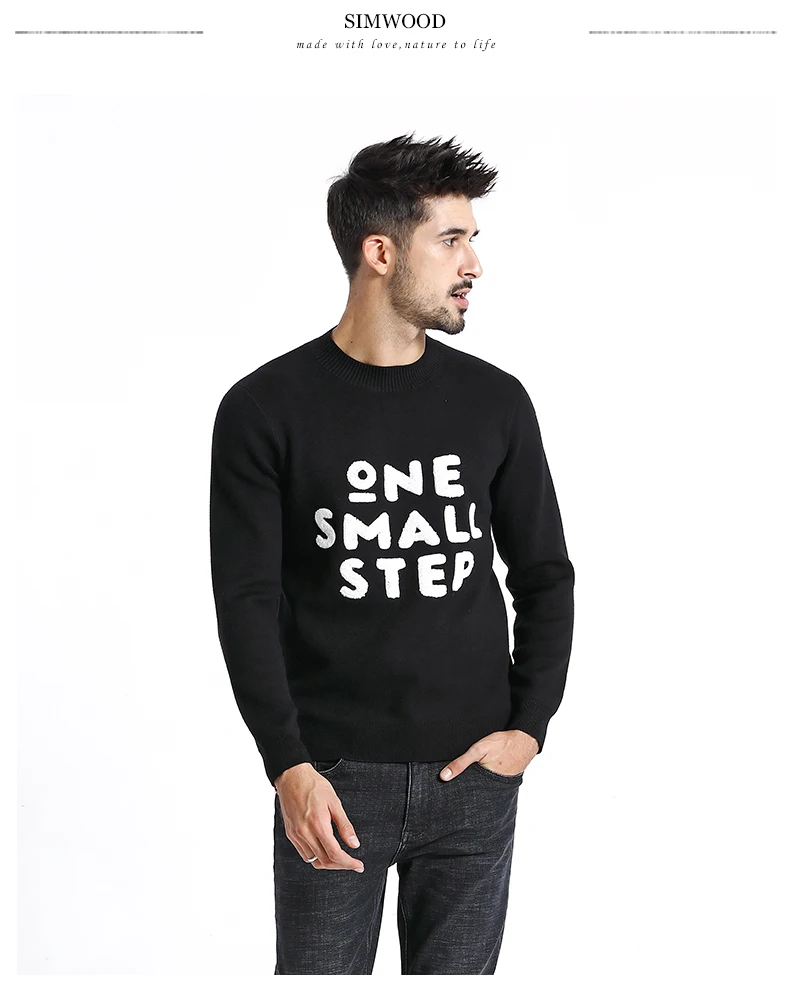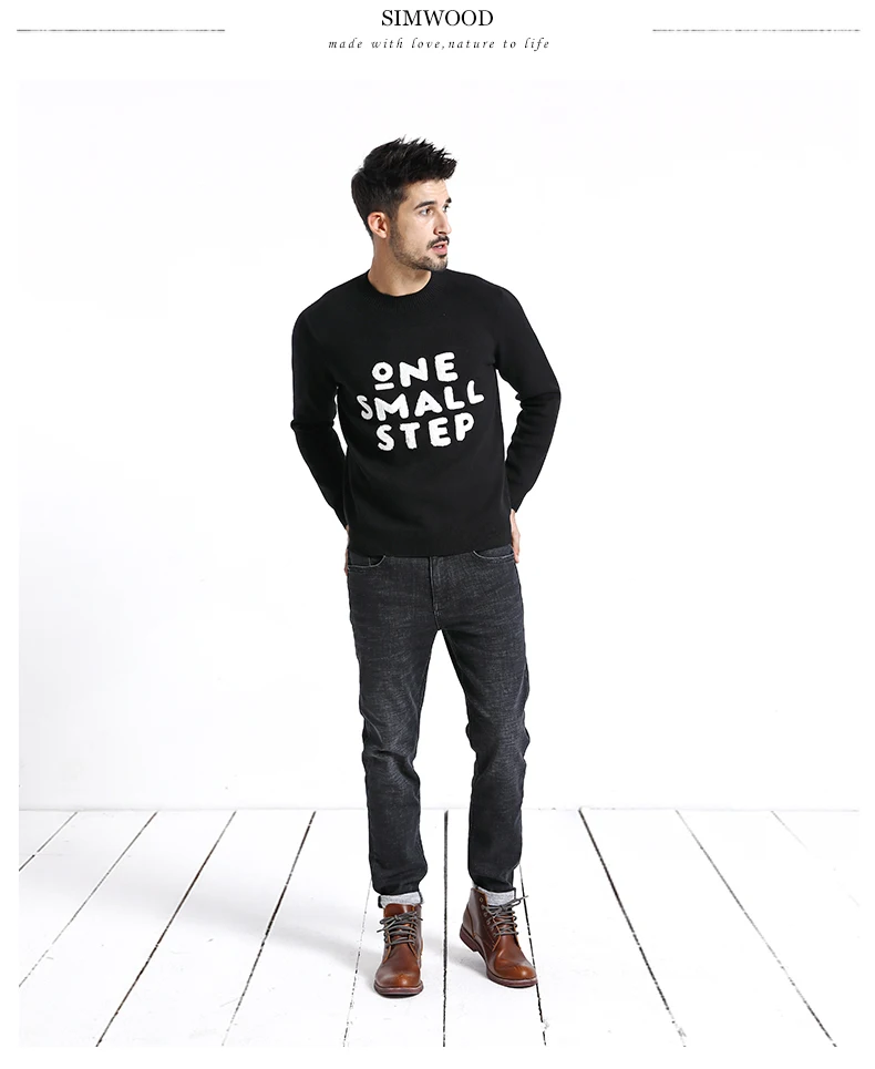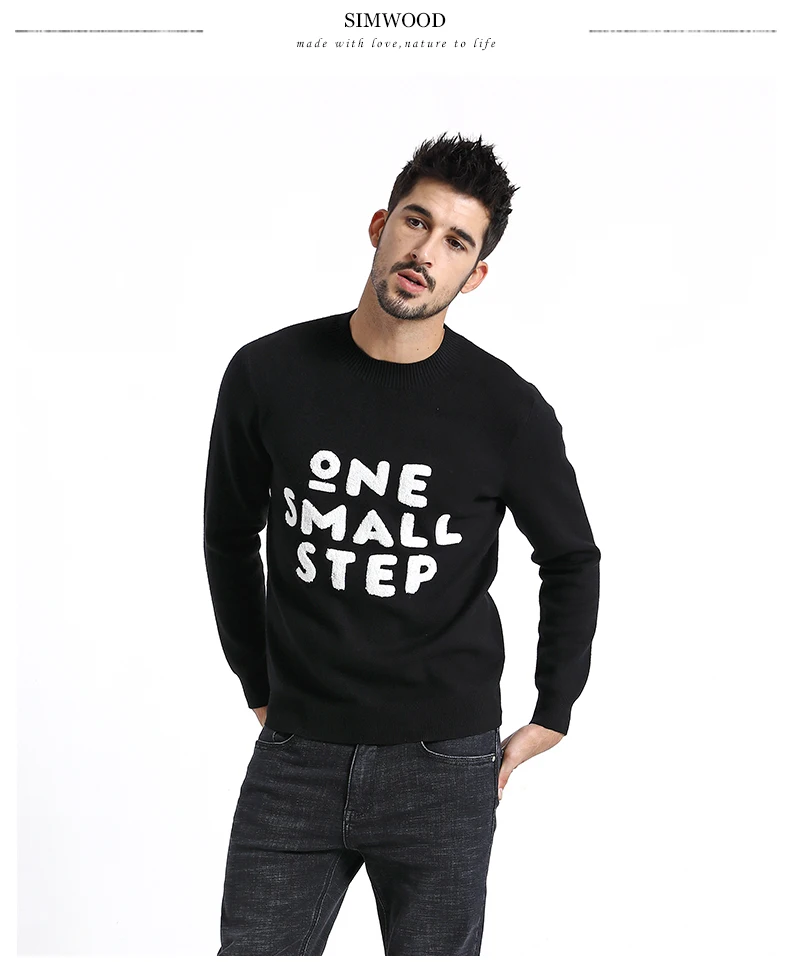 Мужской свитер в рубчик SIMWOOD, модный пуловер с вырезом под горло, теплое повседневное трикотажное изделие с надписью, модель 180620 большого размера на зиму, 2019