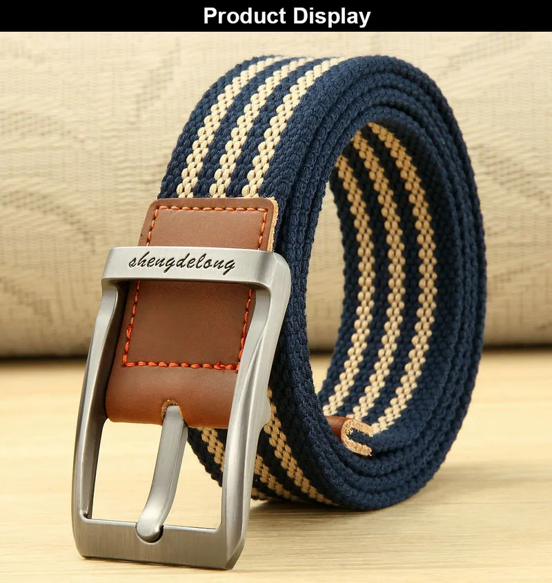 Мужской ремень в полоску MEDYLA, высококачественный зашифрованный холщовый ремень с пряжкой из твердого металла и стали для мужчин, кожаный ремень для спорта