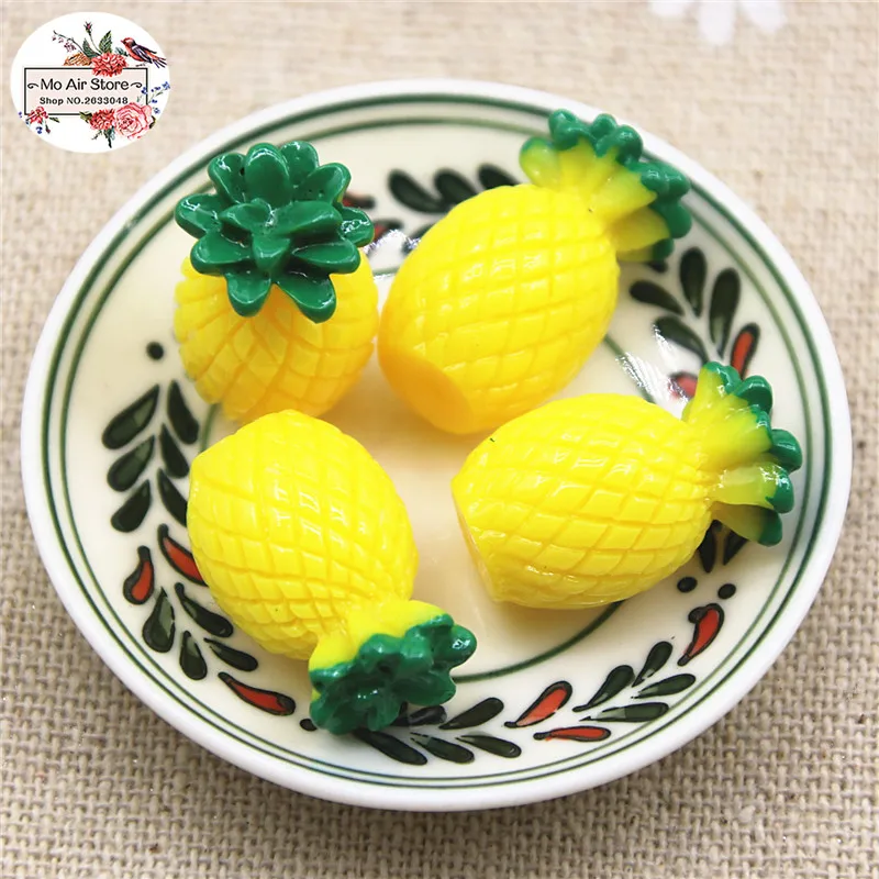 Фруктовый ананас 10 шт., 3d-кабошон с плоским основанием, миниатюрное украшение для пищевых продуктов, очаровательное ремесло
