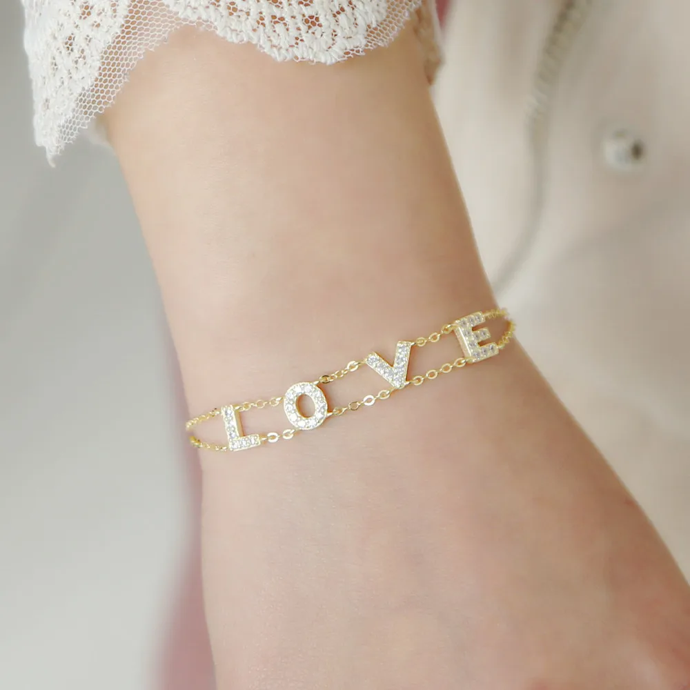 Браслет женский из серебра 100% пробы, заполненный золотом, с буквами