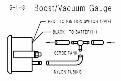 1. Манометр может быть установлен в 2 ''/52 мм Диаметр отверстия или в автоматическом манометре на заказ панели. Безопасный датчик с установочными зажимами.2. Сверло 3/8 "Dia. Отверстия и установка резиновых втулок, где давление или вакуумная линия проходит через лист, такой как брандмауэр.3. Прикрепите нейлоновую линию давления для установки на задней части датчика с помощью адаптера, наконечника и компрессионной гайки. Линия маршрута через прокладки в моторный отсек. Подключите линию к порту давления на двигателе с помощью наконечника адаптера 1/8 ''и гайки сжатия для турбо и протезов или 1/8'' адаптера и фитинга для вакуумного датчика.