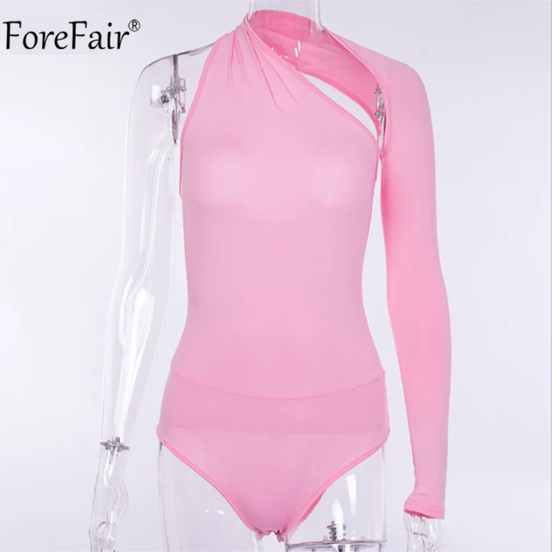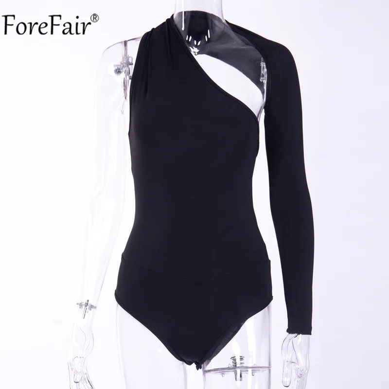Forefair платье на одно плечо с длинными рукавами и круглым вырезом боди 2019 весенние женские трикотажные уличная черный, белый цвет пикантные узкие боди