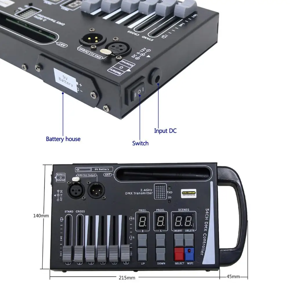 Контроллер лазерсветильник света DMX512, перезаряжаемый, беспроводной передатчик по протоколу DMX, беспроводной, для сценических эффектов, дискотек