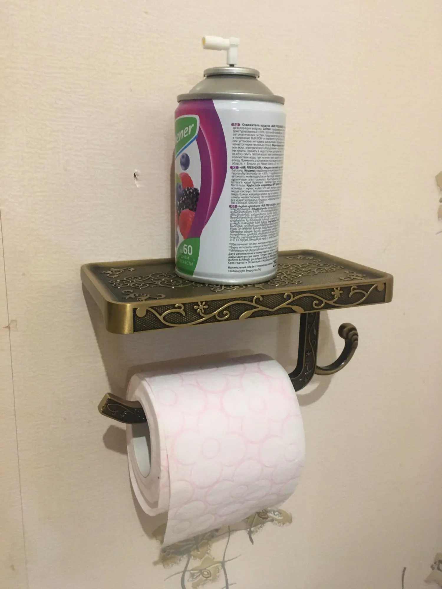 Красивая полка- держатель, все как описано. Можно менять располодение держателя для бумаги. Доставка - 3 недели. Рекомендую!