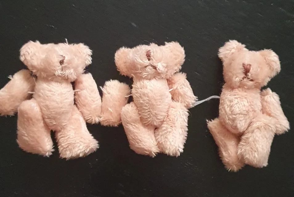 Мишки милые, но из 6 штук - 3 вот такие как вы видете на фото. Можно было бы и пришить, но у одного мишки не хватает лапки, у другого, одна лапка больше другой.. У третьего нога одна больше и форма другая. Я расстроена. С продавцем не общалась. Так что подумайте, прежде чем заказывать.