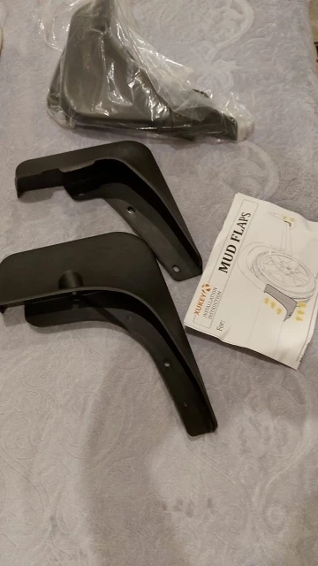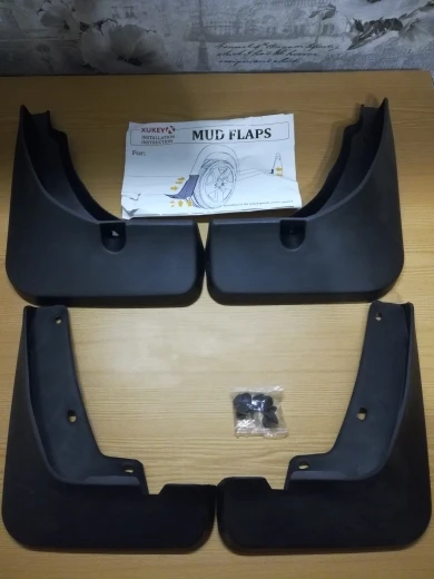 Заказ выполнен очень быстро. Доставкой очень доволен. Сами брызговики - исполнение не плохое, достаточно жесткие, точно не мягкие. Встают в штатные места, но НЕ СОВСЕМ. Передние крепятся только на 2 штатных самореза, на 3 никак не получается, дырявить пластик не стал, поэтому закрепил на 2 штатных ( держатся хорошо, не болтаются). Задние крепятся на пистоны, но не штатные ( нужно докупать чуть длиннее ), на них держатся нормально ( немного гуляют, нужно докручивать саморезы - делать этого не стал ). Смотрятся брызговики не плохо, как на картинке. Продукт нуждается в доработке - считаю, что можно сделать их таким образом, чтобы они вставали в штатные места без всяких дополнительных вкручиваний саморезов ( это касается передних брызговиков ), задние нуждаются в сверлении, т.к. не предусмотрены штатные дополнительные отверстия ( здесь хотелось бы увидеть в комплекте более эстетичное дополнительное крепление, а не просто черные саморезы )