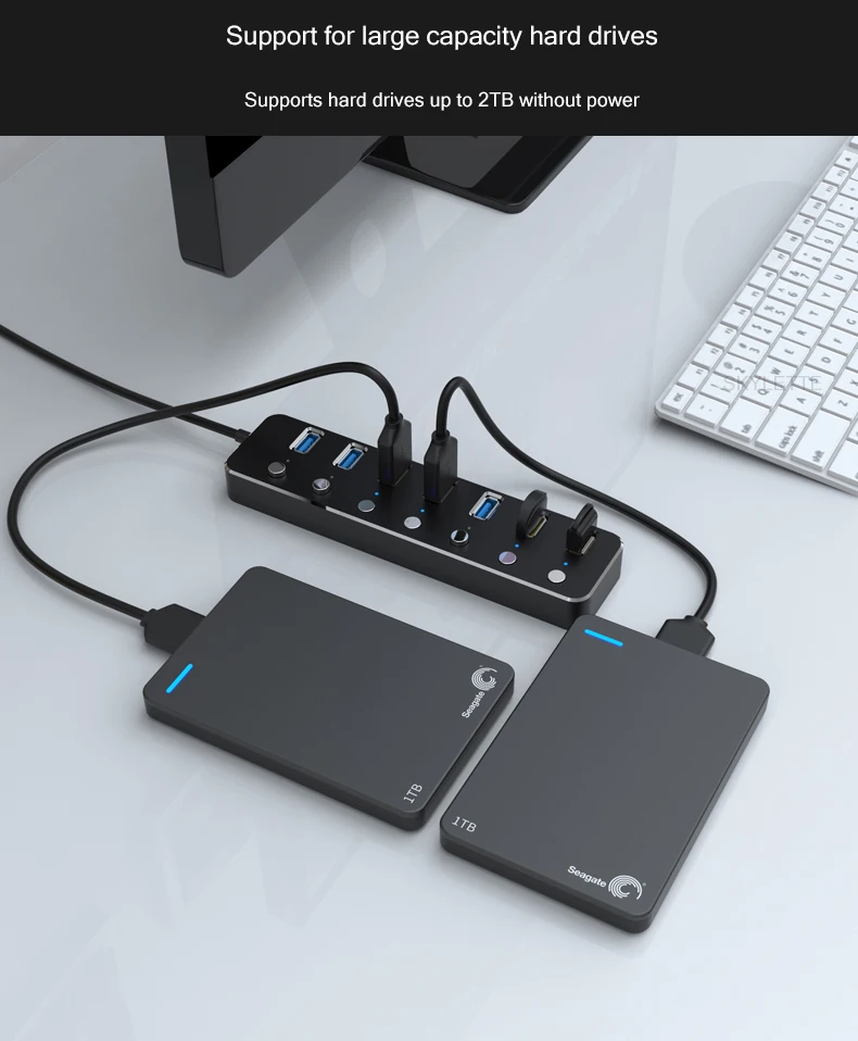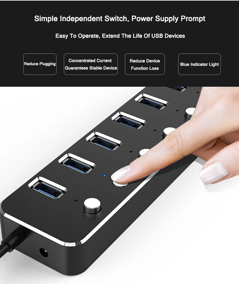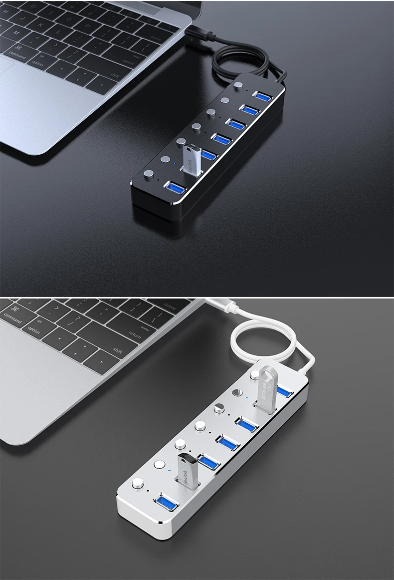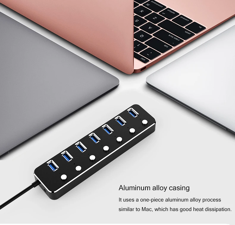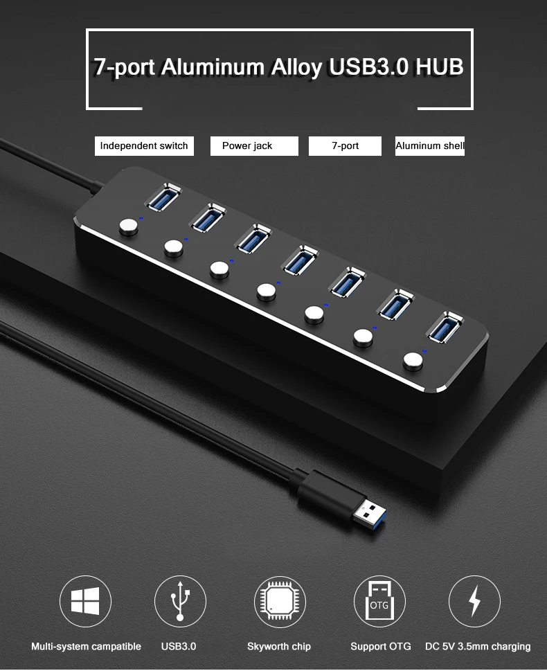 Алюминиевый 7-портовый концентратор USB 3,0 60120 см, подконтрольный кабель, 5 Гбитс, светодиодный концентратор индикатора, заряжаемый разветвитель для нескольких usb-устройств