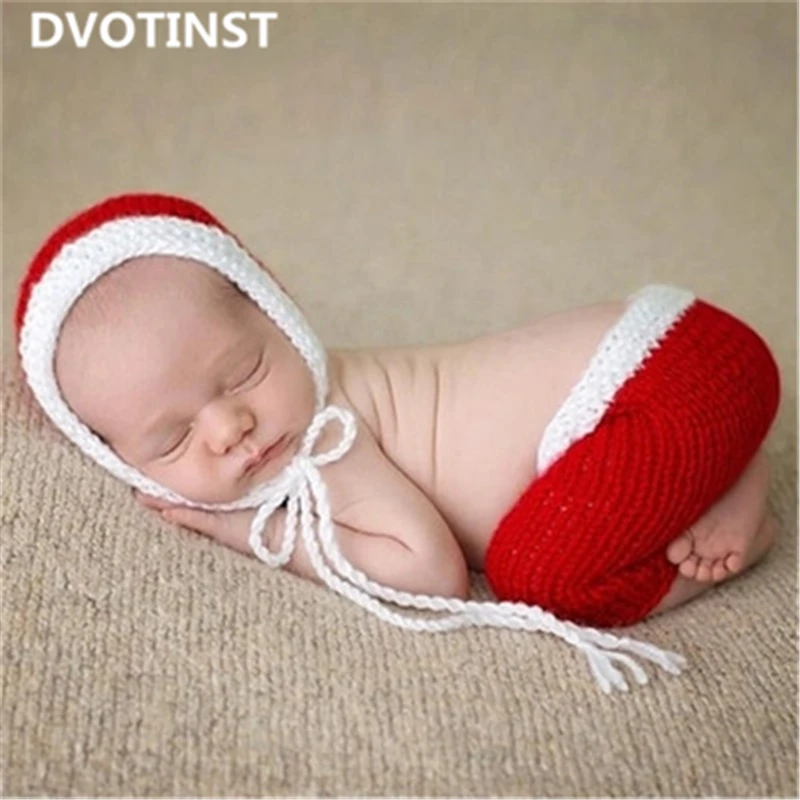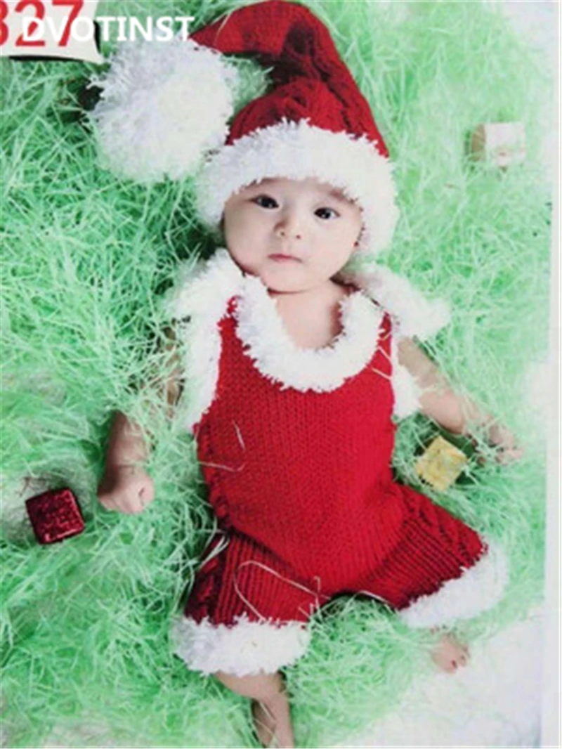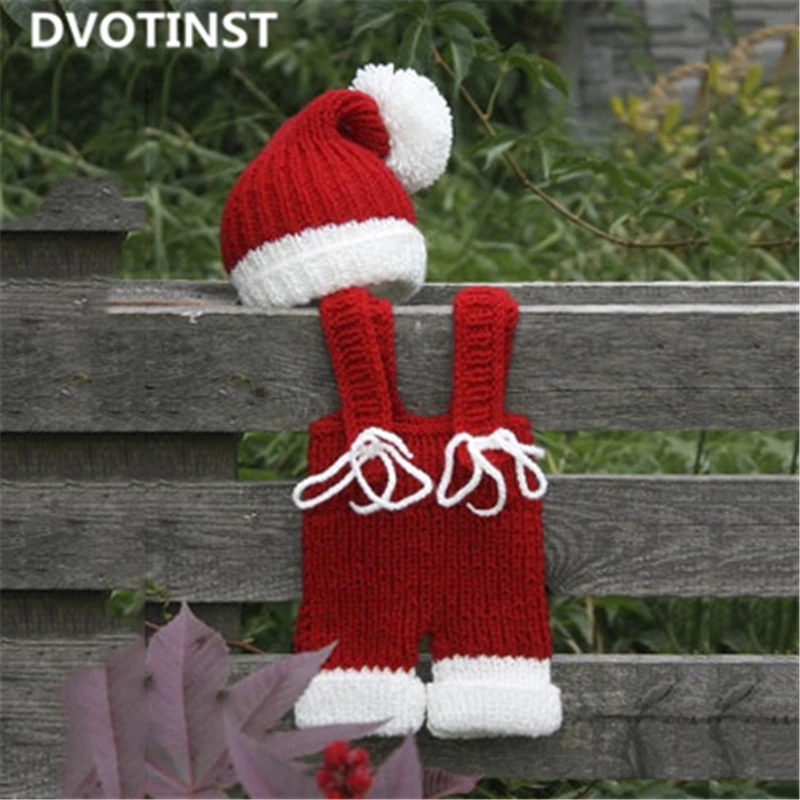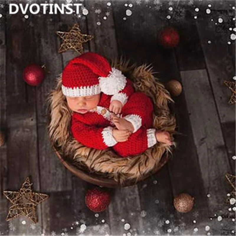Dvotinst Новорожденный ребенок Фотография реквизит вязанные крючком рождественские наряды комплект одежды комбинезоны хлопчатобумажная пряжа фотореквизит