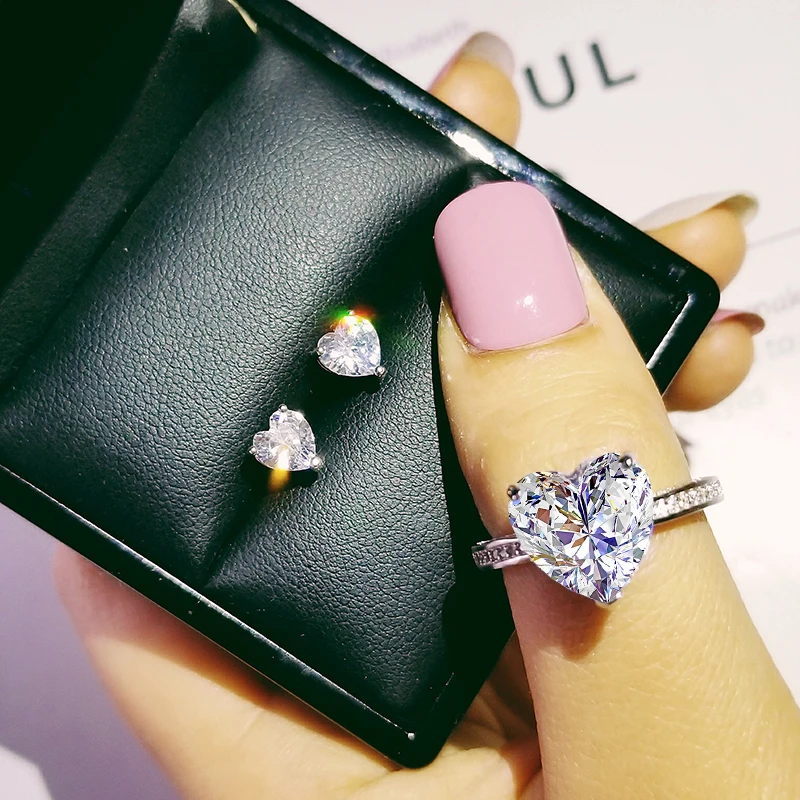 Набор ювелирных изделий из серебра 925 пробы, 2 шт., обручальное кольцо, круглые серьги-гвоздики для свадебного подарка J4921