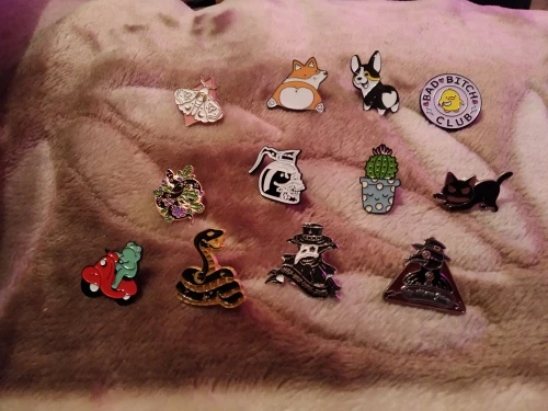 Эмалированные значки в виде черепа, розы, цветов, японского воина