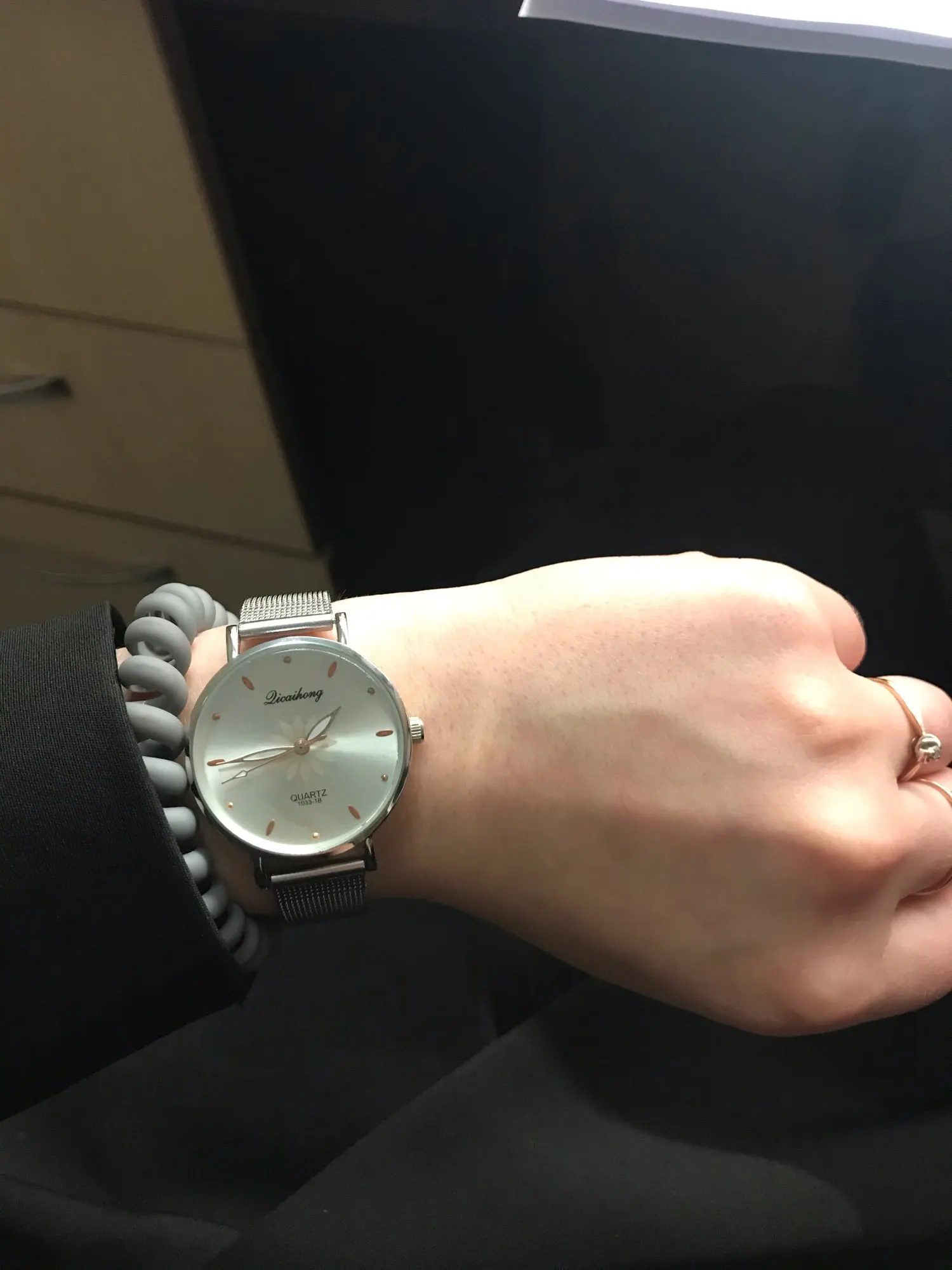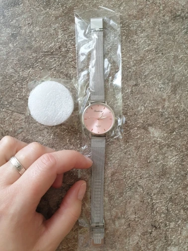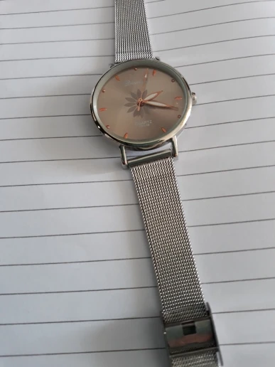 милые и нежные часики, по качеству недостатком не обнаружила, легко регулируется ремешок, на руке смотрятся стильно. доставка в Украину почти месяц